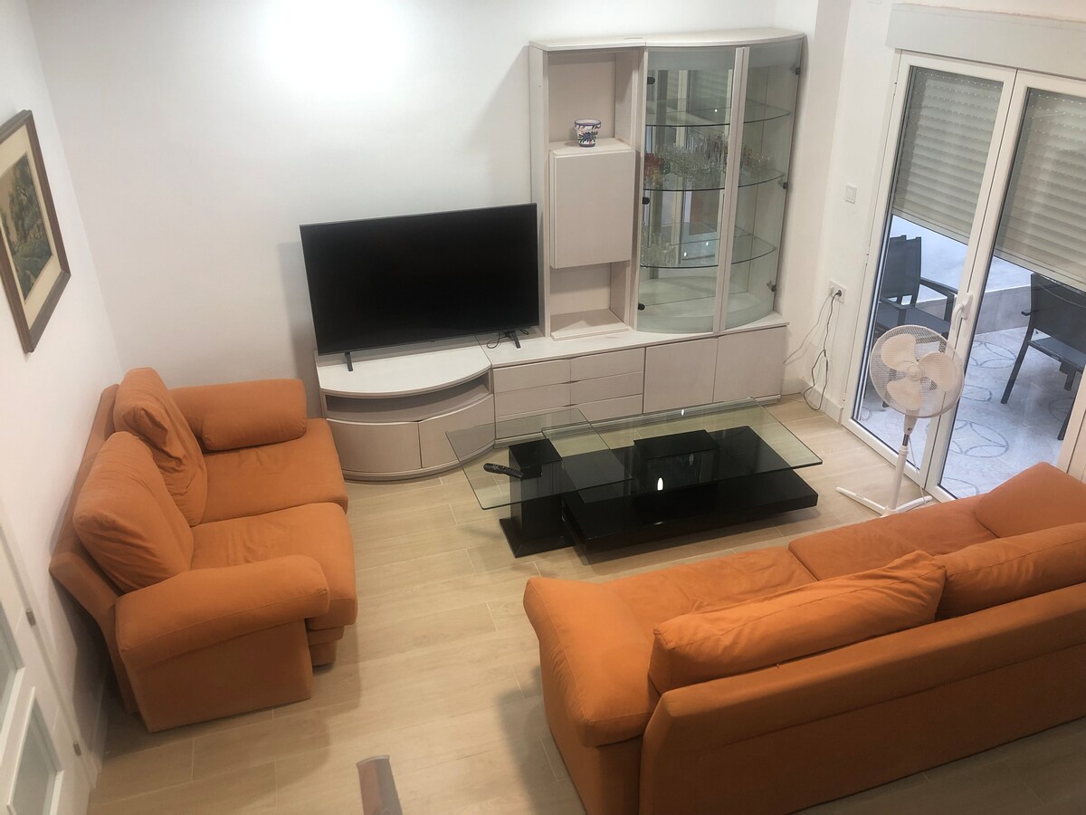 Coqueto Chalet totalmente equipado con salón-comedor abierto, cocina espaciosa, una habitación con cama de matrimonio y baño integrado, dos habitaciones con dos camas individuales cada una y baño completo independiente. Está a 15 min de Valencia.