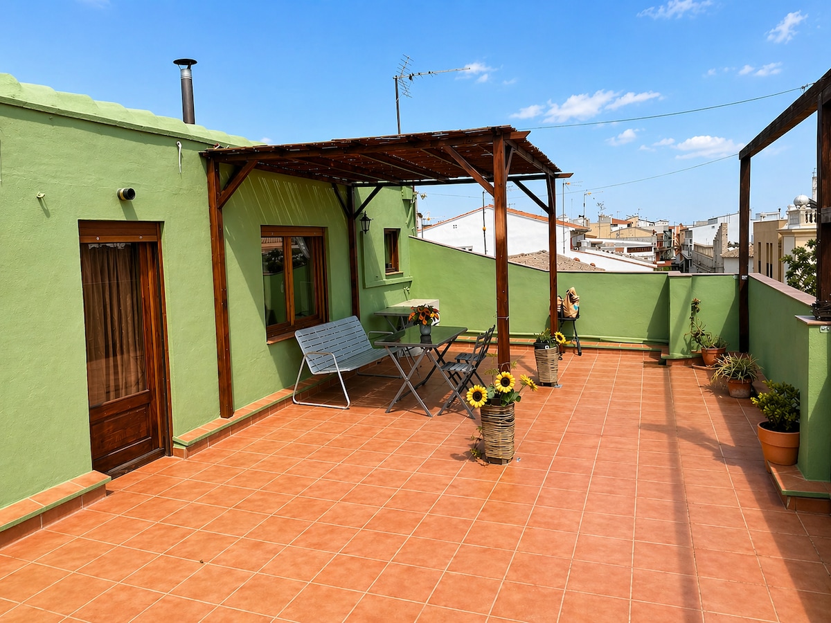 Relax in a studio, full of color and very comfortable, and its large terrace overlooking the hills of the Valley of Albaida. At your disposal all the necessary amenities, with mini full kitchen, air conditioning and free Wi-Fi. In front of the studio are the old schools built in 1930, which house the municipal library and the museum of singer Nino Bravo and in front of you find the splendid Paseo del Ensanche. You can also walk along the river and get an amazing experience breathing nature.