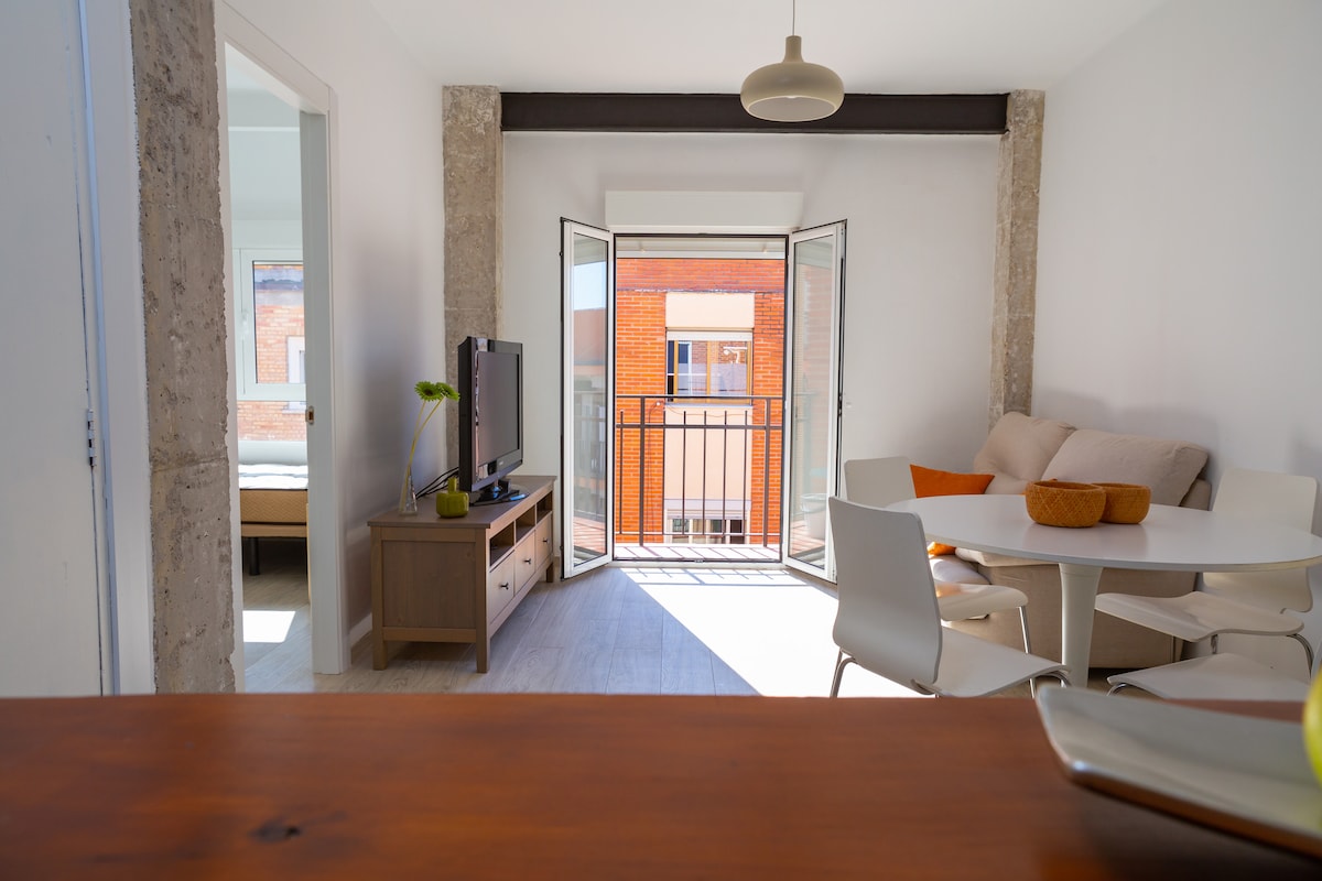 Beautiful duplex apartment, located in the Cabanyal neighborhood, is fully equipped to accommodate up to 4 people. It has 1 bedroom, a bathroom, living room, kitchen open to the living room and balcony. It has air conditioning and free WiFi. Its excellent location makes it a perfect option for a stay in Valencia since it is 4 km from the City of Arts and Sciences, with a bus and tram stop a few meters away and very close to the Polytechnic University.
