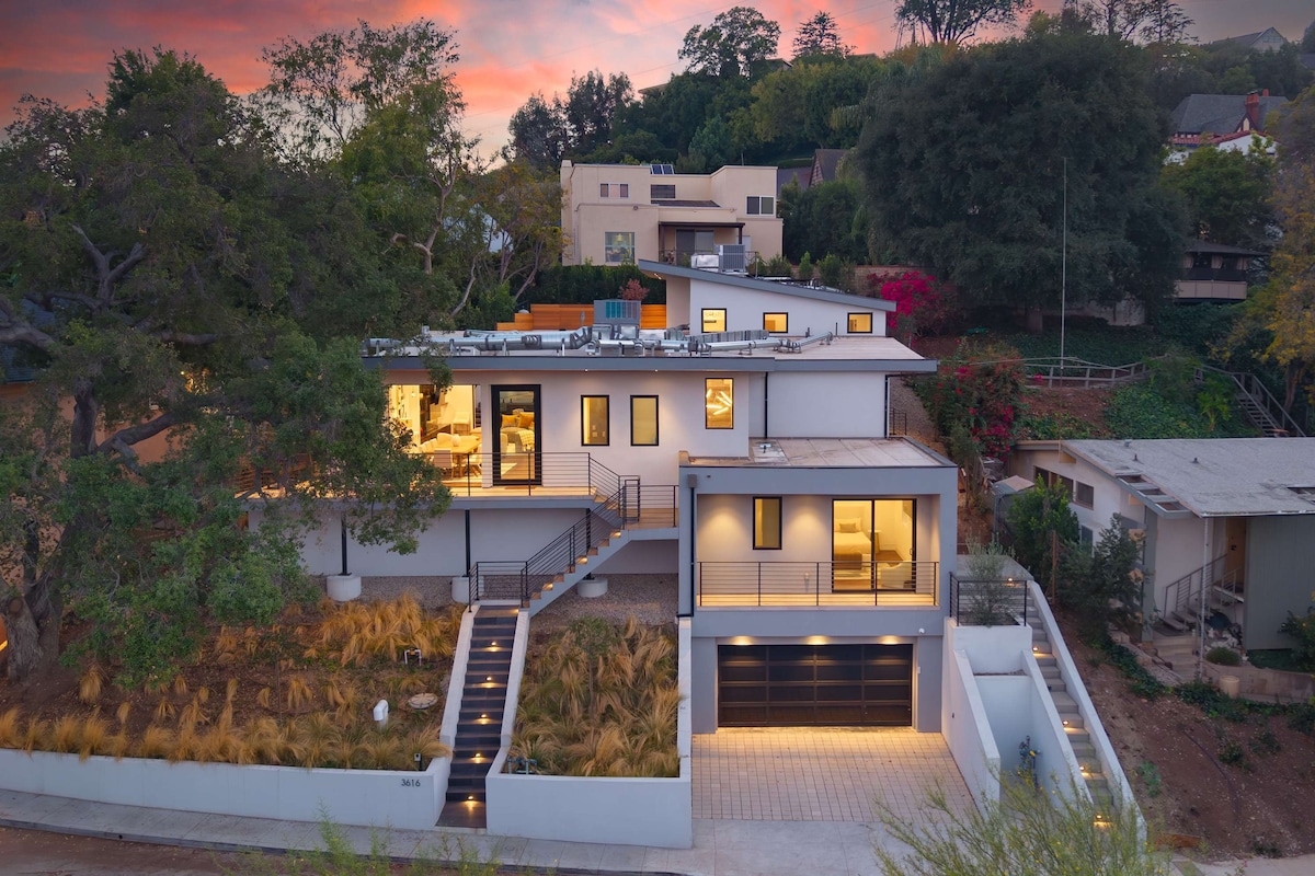 Midcentury modern 2bed/2bath stilt home with spectacular views above Sunset Strip (2 blocks up from Hollywood + Fairfax). Only blocks from the action, but very private and quiet. Recent renovations from roof to foundation, heat/AC system, 1 Giga/sec wifi, wired in + out with 11 speakers, movie projector + two 4k TVs (free Netflix, HBOMax and AppleTV+), 2-car parking with level 2 electric charger. Please note: No social gatherings or late, loud nights. Interior = 1015 sq ft. Deck = 300 sq ft.