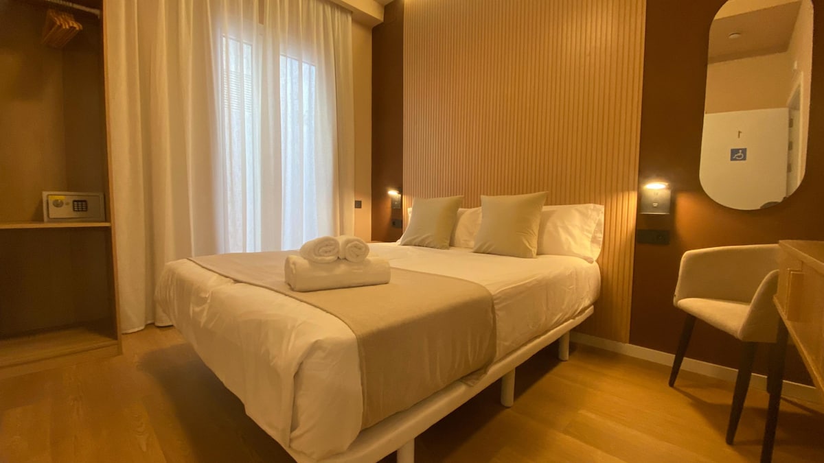 Situado en pleno centro de valencia, Habitaciones nuevas recien decoradas, exteriores, con escritorio y neverita minibar. WiFI incluido. Habitaciones tranquilas. Amplias habitaciones equipadas con 2 camas o 1 cama doble Extra grande y baño completo con artículos de aseo y secador de pelo. También incluye TV, caja fuerte, aire acondicionado y calefacción. La decoración es elegante de una manera simple y funcional, haciendo que su estancia sea aún más agradable.