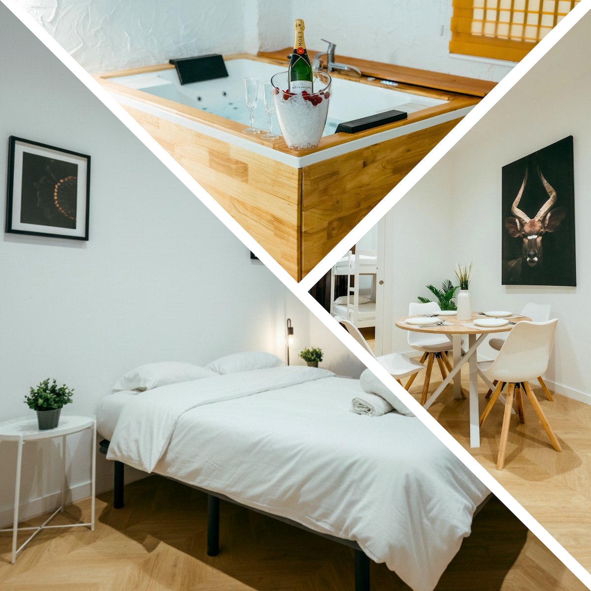 A high design studio in the heart of Ruzafa. This cozy space is perfect for those who want to disconnect from the vibrant city life. With capacity for two people and a sofa bed for 2 more. It has all the necessary amenities, as well as a separate entrance and a fantastic Jacuzzi to relax in. Its privileged location allows you to easily explore both the historic center and the beaches of Valencia, making your stay an unforgettable experience.