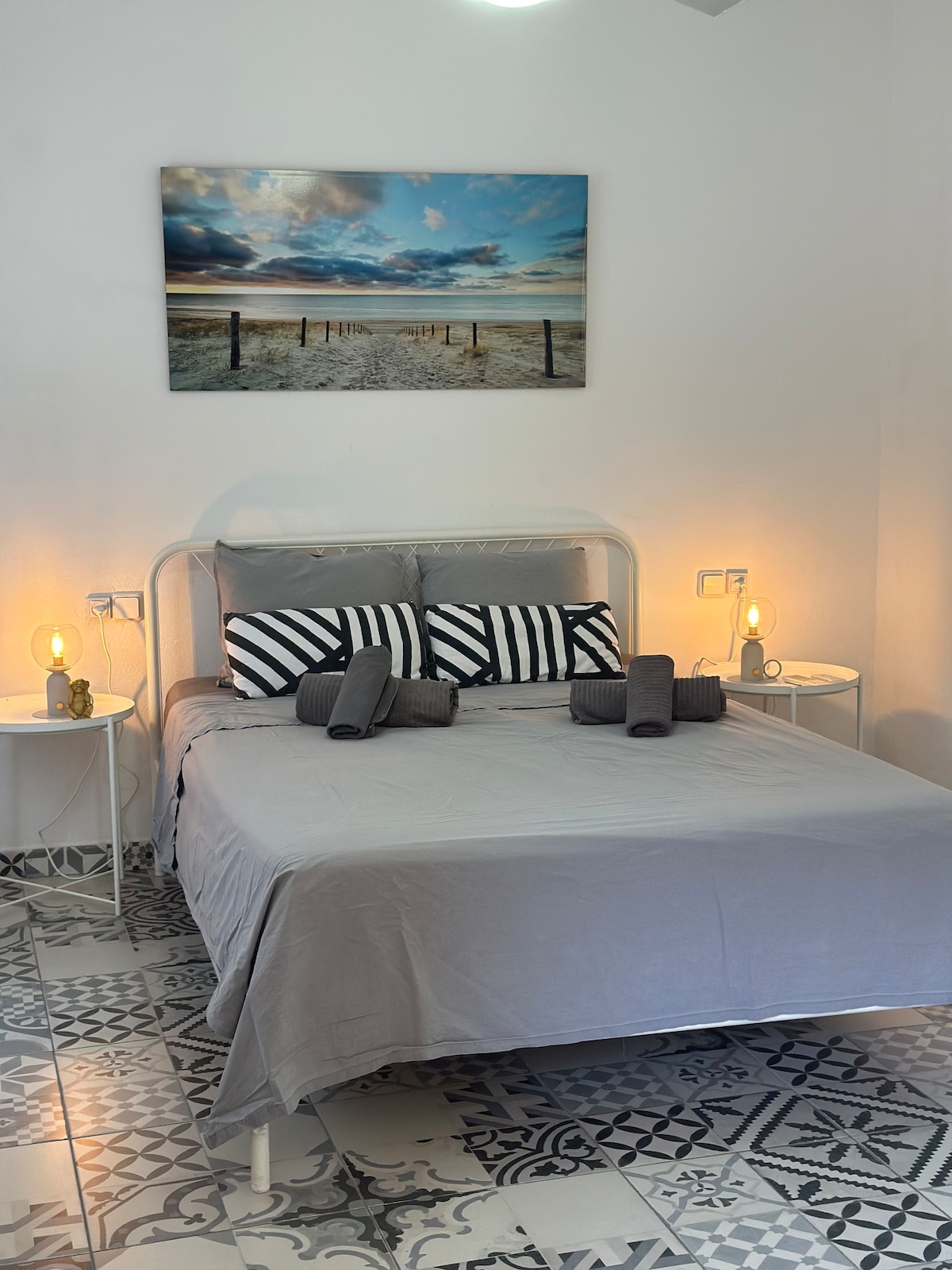 Autocheck-in for a hassle-free arrival 🔑 Jacuzzi on the large terrace to relax 🛁🌅 2 comfortable Queen beds + sofa bed for 2 people 🛏️🛋️ Fully equipped kitchen 🍳🥘 Just 5 minutes walk from the beach 🏖️ Smart TV de 55" con Netflix, Prime Video, etc. para tu entretenimiento 📺 Parking available during the day 🚗 Pet friendly 🐾 Well connected to the city center 🚇 High-speed Wi-Fi 📶