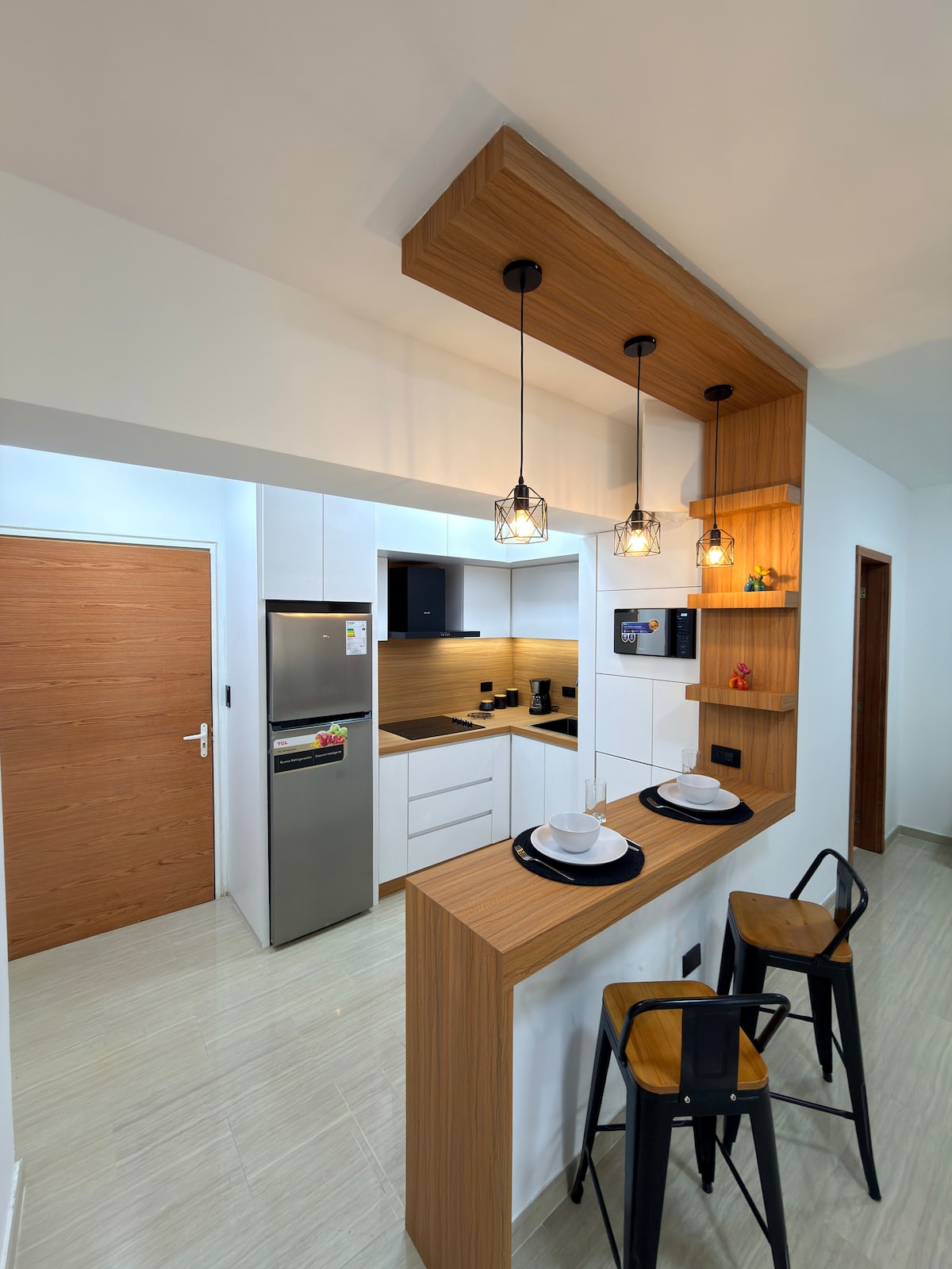Vive una experiencia de alojamiento con estilo, confort y buen gusto. Este apartamento ha sido diseñado pensando en quienes valoran los detalles, el ambiente y la funcionalidad. Ideal para familias o ejecutivos que buscan un espacio acogedor, moderno y con todas las comodidades para descansar o trabajar desde casa. Desde que entres, notarás el equilibrio perfecto entre diseño y calidez. La sala de estar cuenta con un moderno mueble de entretenimiento y un Smart TV de 55”