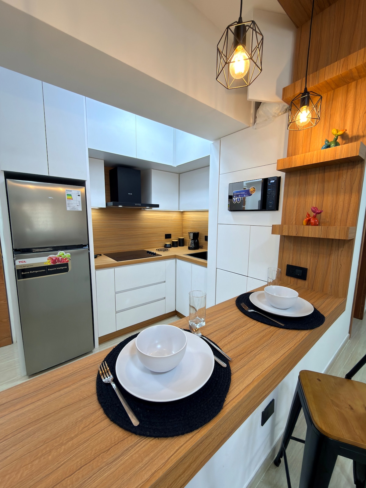 Vive una experiencia de alojamiento con estilo, confort y buen gusto. Este apartamento ha sido diseñado pensando en quienes valoran los detalles, el ambiente y la funcionalidad. Ideal para familias o ejecutivos que buscan un espacio acogedor, moderno y con todas las comodidades para descansar o trabajar desde casa. Desde que entres, notarás el equilibrio perfecto entre diseño y calidez. La sala de estar cuenta con un moderno mueble de entretenimiento y un Smart TV de 55”