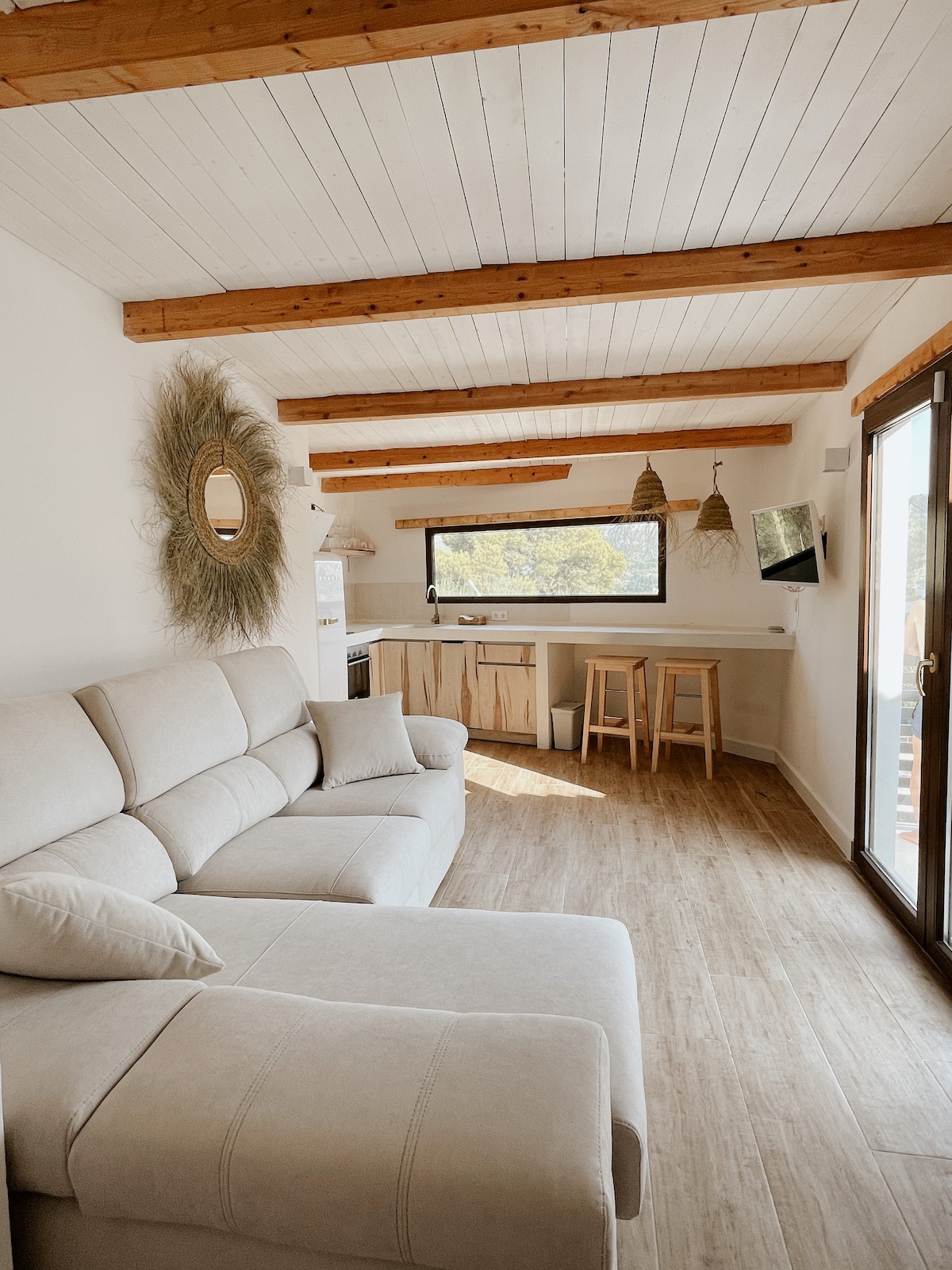 Welcome to Horizonte Azul, a cozy nest with astonishing views over the sea and the spectacular cliffs of the Moraig cove. Located in a pretty residential area, your two stylish rooms have individual entrances and are connected through a beautiful bathroom. On your private shaded terrace, an outdoor table and furniture w/sink allows you to prepare breakfast or cold bites. Activities? Book a private Pilates lesson on site, or enjoy hiking and other sports close by. We look forward to you staying!