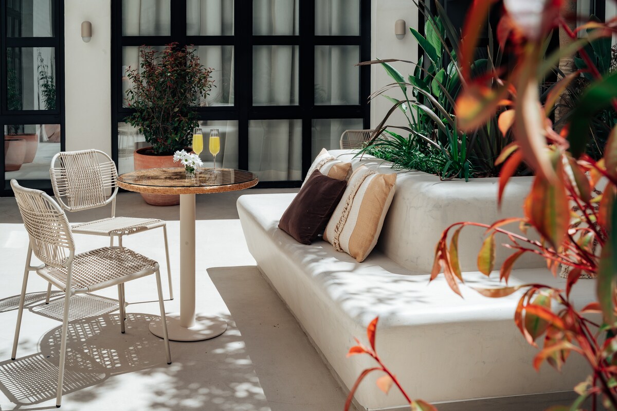 Step into a historic 138-year-old building with exposed brick walls and modern microcement finishes. Our bedroom includes a EU queen-size Tempur bed, ensuring at most comfort for our guests, and a 65-inch TV under lofty ceilings. Revel in the convenience of an eco-friendly tropical rain shower ( hot & cold ) and a beautifully crafted, contemporary kitchen. We prioritize a homely atmosphere over a hotel feel.