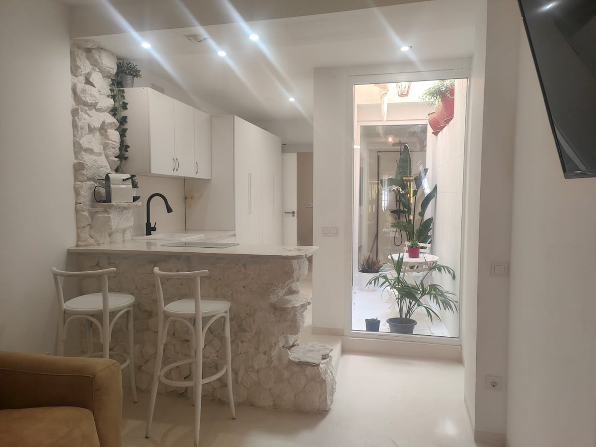 Se trata de un estudio independiente muy acogedor, de estilo rural, cerca del mar y con todas las comodidades. Entrada privada con baño, dormitorio (aire frío/calor) y salón (nevera, microondas y cafetera). Zona exterior con aparcamiento, terraza, jardín y barbacoa. En la finca hay 3 simpáticos gatos y un pequeño huerto ecológico. Situado a 50 metros del mar, junto al paseo marítimo de la reserva marina, un lugar con mucho encanto y tranquilo.