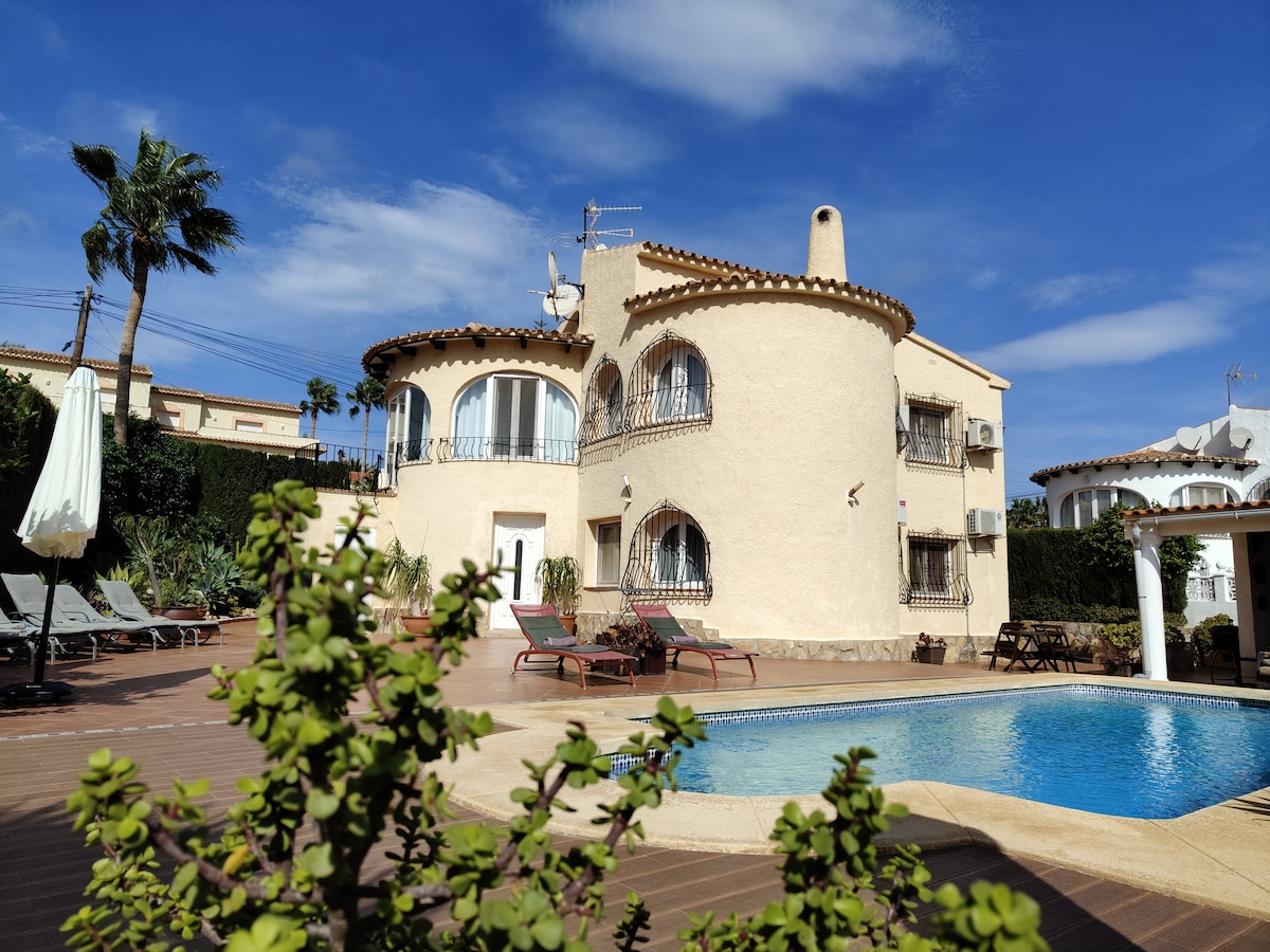 Logement entier comprenant 2 chambres à coucher (1 grand lit et 2 lits séparés), piscine privative à usage uniquement des locataires, coin barbecue, cuisine extérieur équipée avec taques de cuisson, micro-onde, frigo et tout le matériel de cuisine. Parking privé et possibilité de stocker des vélos dans garage sécurisé.. Vue imprenable de Moreira à Calp et le fameux rocher. Profitez d'une escapade relaxante avec tout le confort nécessaire.