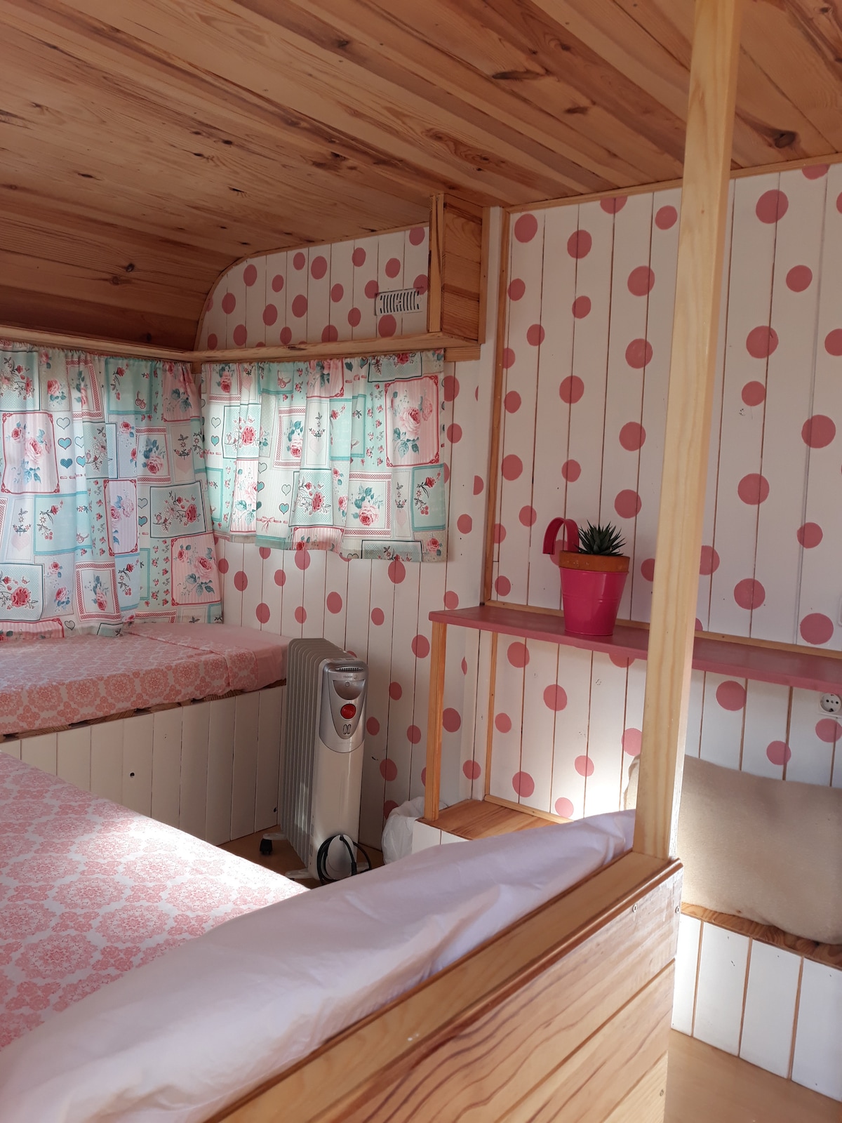 El alojamiento consta de 2 caravanas vintage, totalmente reformadas que forman una única estancia. Instaladas en un gran jardín, con increíbles vistas a la montaña. Reformadas y decoradas con gran lujo de detalles. Equipadas con todo lo necesario para unas vacaciones tranquilas y relajadas. Disponen de ropa de cama, menaje de cocina, calentador de agua, calefacción para invierno y ventilación para verano. Zona de juegos infantiles. Instalaciones privadas y cercadas. Parking privado y gratuito