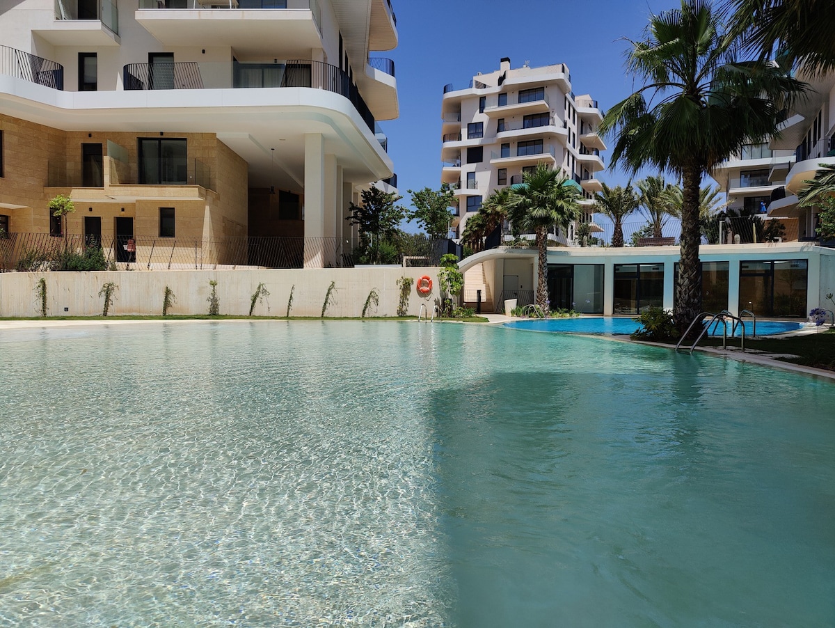 This absolutely new luxurious apartment is located 100 m from the sea in the most incredible enclave Torres with eucalyptus and palm trees providing shade on the beach. On a large terrace you can enjoy spectacular views of the sea and the mountains. This fantastic urbanization has two open season swimming pools, SPA zone: warm jacuzzi, counter current, sauna, hammam, outdoor gym, children's playground. it's recommended to have a car for easy access to services in Villiayojosa and Benidorm.