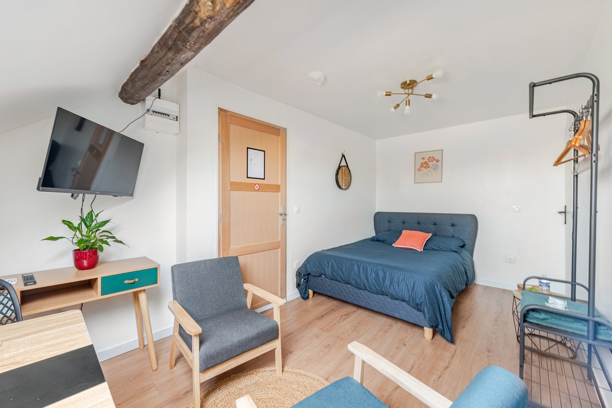 🚨Profitez d'un logement élégant et central🚨 ➡️ Rendez votre séjour à Cambrai mémorable en séjournant dans notre charmant studio entièrement rénové au deuxième et dernier étage d’un bel immeuble typique du Nord idéalement situé à quelques pas de la gare SNCF Cambrai🚉. Un service de self-Check in vous permettra d'accéder au logement en toute autonomie🔐. Venez tout simplement avec votre valise 💼 et nous nous chargerons du reste !
