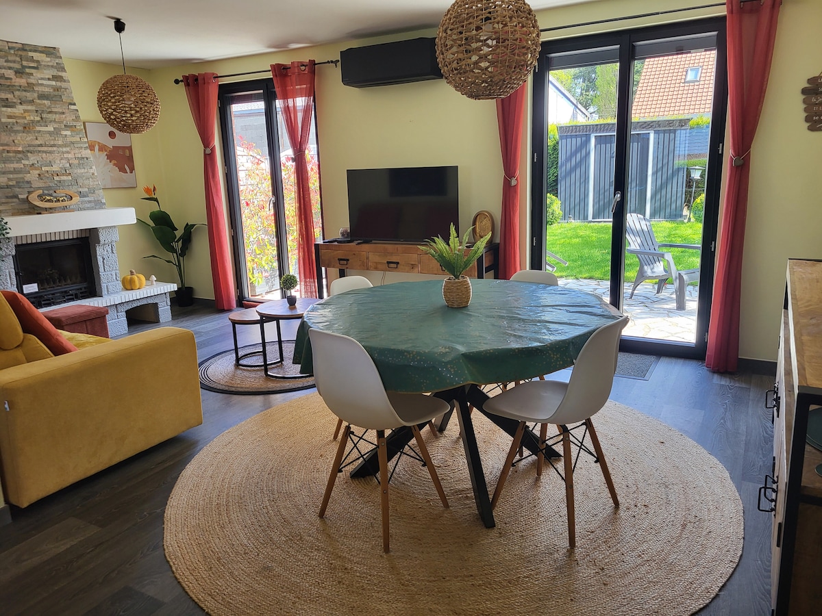 Maison loisirs: salon gaming borne arcade 27000 jeux, PS5 sur TV 4K (+50 jeux), casque VR, simulateur de conduite et Switch OLED avec Mario kart 8. TVs avec Netflix, Disney, Prime video. Cuisine ouverte toute équipée, espace repas 8 assises. Terrasse et jardin avec barbecue et trampoline. 3 chambres dont chambre king size cinéma (lit king size, vidéoprojecteur, pop-corn), chambre enfant et 3ème avec 2 couchages. Salon avec canapé lit. Proche Valenciennes, Belgique, Lille Pairi Daiza, commerces.