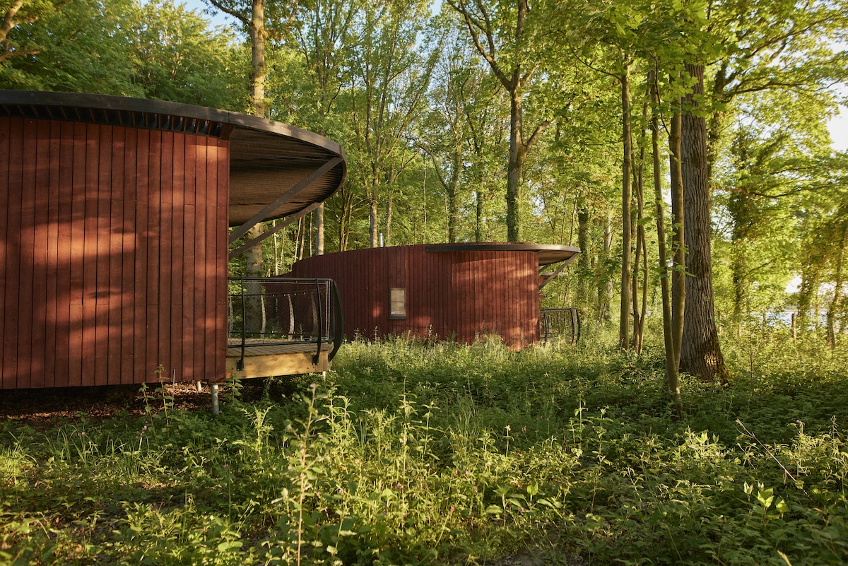 Orientés en hauteur au cœur de la forêt, entrez par une trappe, vivez en communion avec les arbres, dormez sous les étoiles et détendez-vous sur la canopée. Ses volumes largement vitrés et sa terrasse sur le toit vous plongent directement au cœur de la nature. Ses baies vitrées miroir l’intègrent parfaitement dans son environnement et préservent l’intimité de ses occupants. Notre Resort est composé de 188 hébergements atypiques, privatifs et tous entièrement meublés dans le respect de l’écologie