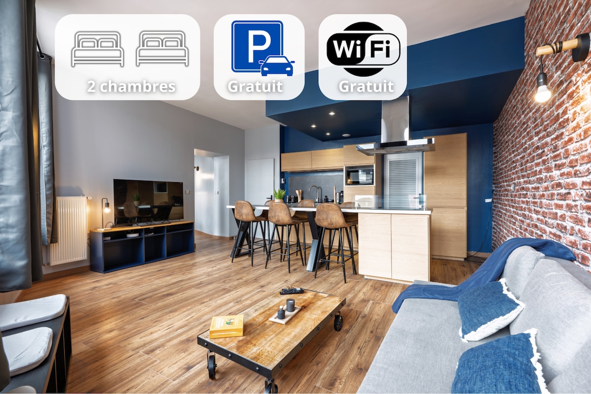 Located right in the heart of Valenciennes, this 75 m² flat is situated in a building listed as a historic monument. Spacious, peaceful and welcoming, it features industrial décor and a cosy atmosphere. Just a stone’s throw from shops and restaurants, everything is within walking distance. It has two bedrooms with large double beds, a fully fitted kitchen with a hob and washing machine, as well as free parking – a real bonus in the city centre.