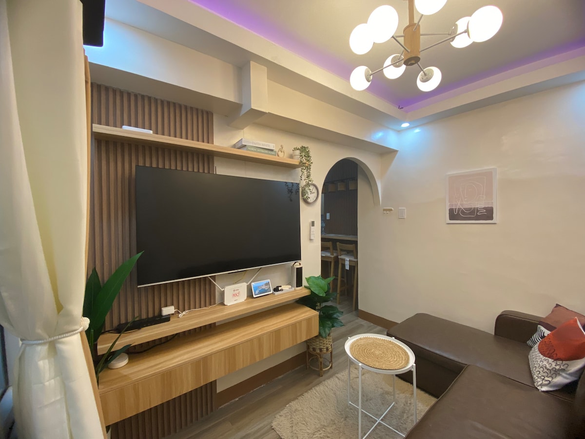This unique place has a style all its own. Feel the NATURAL, WARM & COMFORT ambiance of my flat situatd in the heart of CONG. TOWN CTR. COND., qc. Standard clean, well kept, sanitize flat & fresh premium linens & 6 fluffy pillows. RELAXING and comfrtable QUEEN size orthopedc bed wth premium MEMORY foam topper. Fully furnishd flat wth appliances: 🔹karaoke w/ 2 mic 🔸49" smart tv wth premium netflix acct. 🔹1.5hp new aircon unit wth remote control 🔸unli wf installed 🔹hot/cold shower