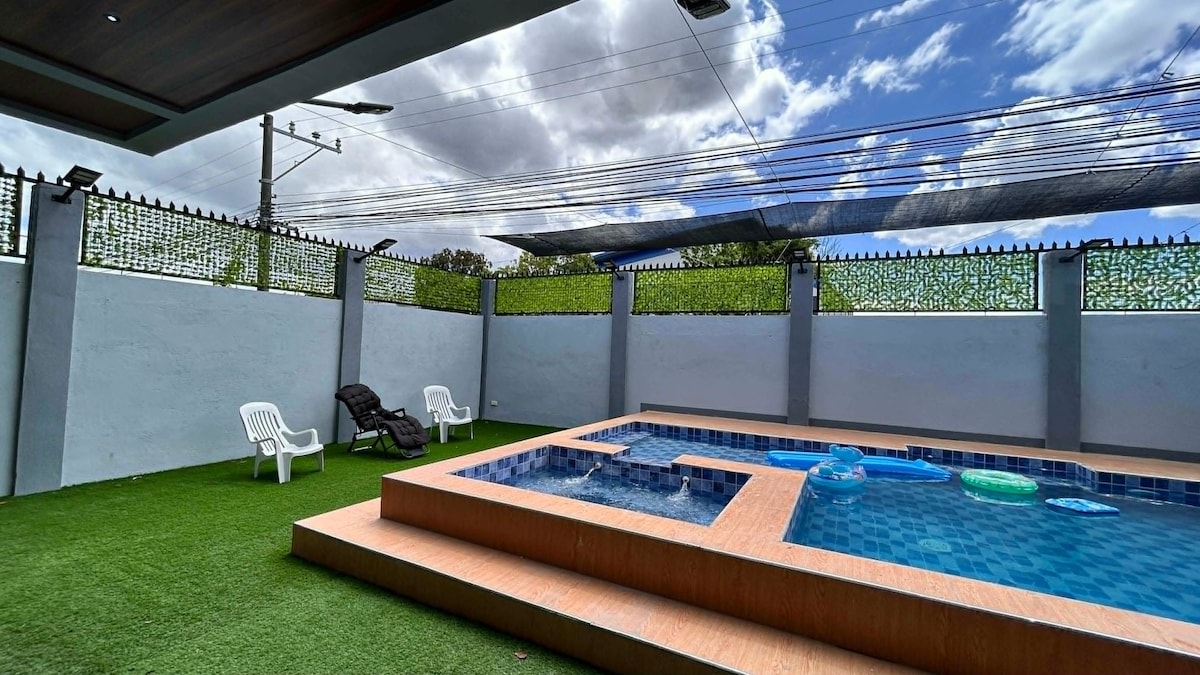 Enjoy The Tropical Villa at Villa Mina, your beautiful escape from the hustle and bustle of the city. Perfect for gatherings & celebrations or if you simply just want to cool off! 🌴 Enjoy: - Private swimming pool (4ft) with water feature - Chic interior design - Outdoor BBQ grill - Air-conditioning - Sofa & Loft-type Beds - Hot showers - Free parking for two cars - Smart TVs with Netflix - Wi-Fi - Kitchen with cooking tools - Karaoke & board games We have more rooms! Inquire to find out 💙