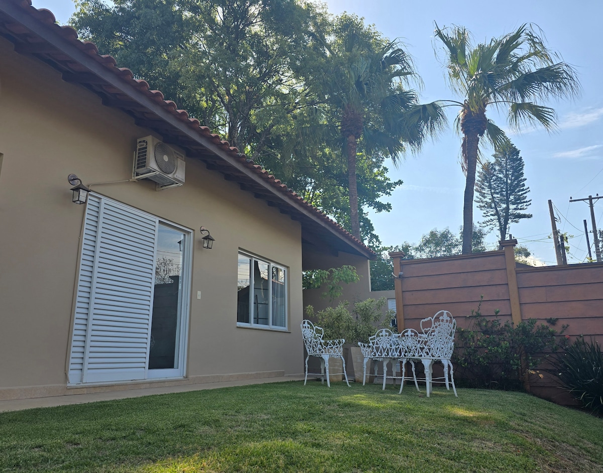 Chácara num lugar tranquilo e agradável. Casa independente bem montada! Dois quartos com cama de casal. A casa e completa com roupas de cama,mesa e banho limpas e cheirosas! A cozinha, sala e lavanderia tb são completas! Tem cafeteira dolce gusto e deixo garrafas de água p chegada dos Nos quartos e sala tem ventiladores! No banheiro vc encontrará papel higiênico e sabonete e toalhas limpas p todos os hóspedes! A casa tem dois quartos um banheiro , uma cozinha conjugada com sala e lavanderia!