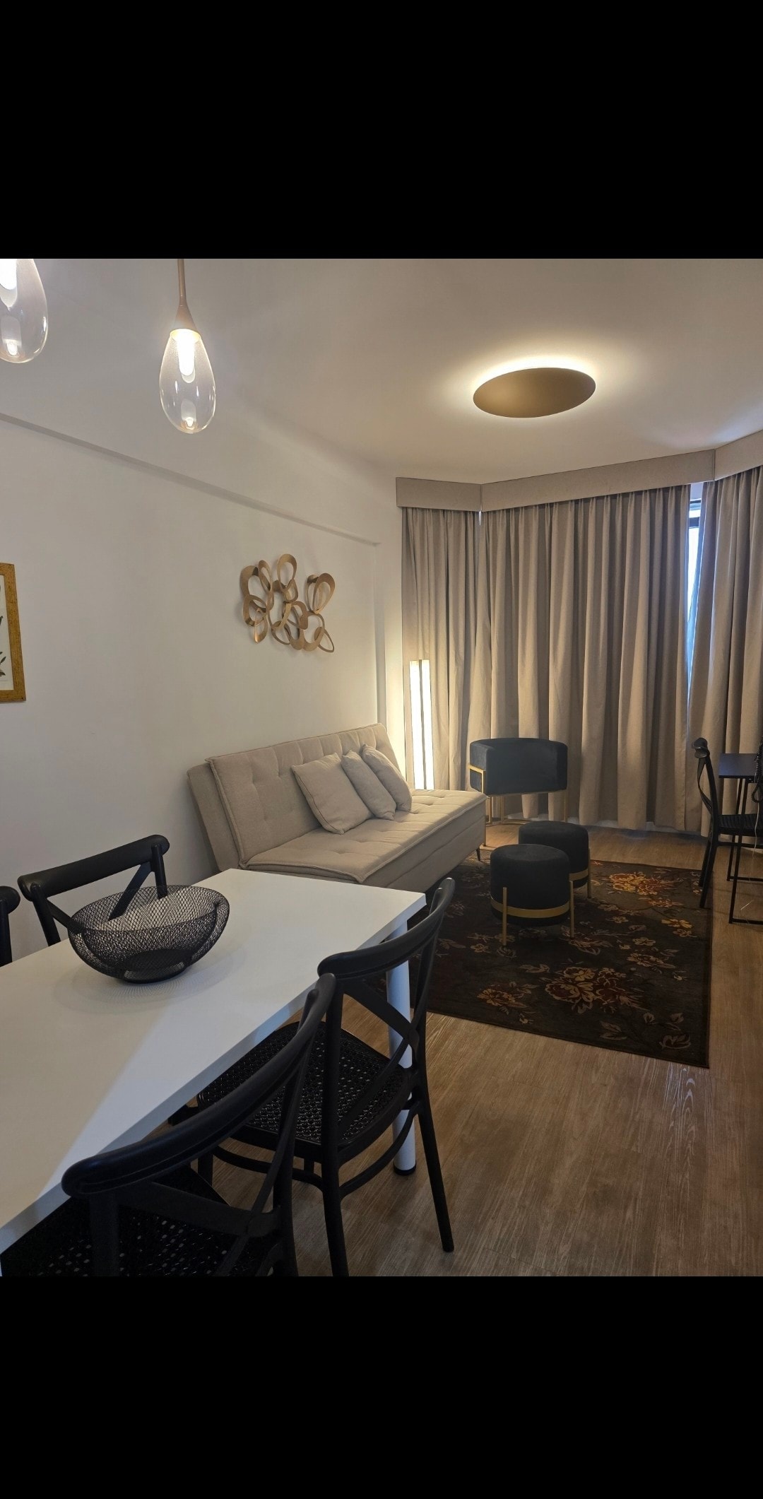 Localizado onde estão ótimos restaurantes e comércio diversificado. Possui suíte e armários embutidos, ar condicionado na sala e na suíte. TV LED de 47 polegadas, secador de cabelos, ferro elétrico, mesa de trabalho, Internet VIVO FIBRA . Sofá cama para um hóspede adicional. Cozinha completa: geladeira, Cooktop, forno elétrico, micro-ondas. Tudo i em prédio moderno com design arquitetônico que reúne sofisticação e modernidade. As áreas de lazer tem fitness piscina sauna hidromassagem