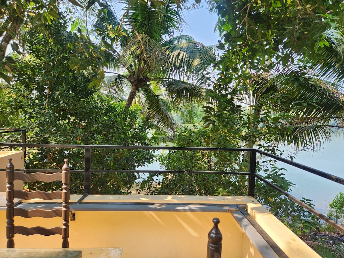 River Periyar is where you will be. With all its beauty. Right in front of you. With varying colours, breeze, ripples, plenty of birds, and very peaceful. Ideal getaway for a family vacation, or a party. The village is very serene and beautiful. You can go kayaking, do some fishing, barbeque, relax on hammocks, go boating, stroll through the paddy fields of the village, visit local attractions such as Paravur, Cherai, Kodungalloor etc. Food on request. Swiggy, Zomato, etc delivery available.