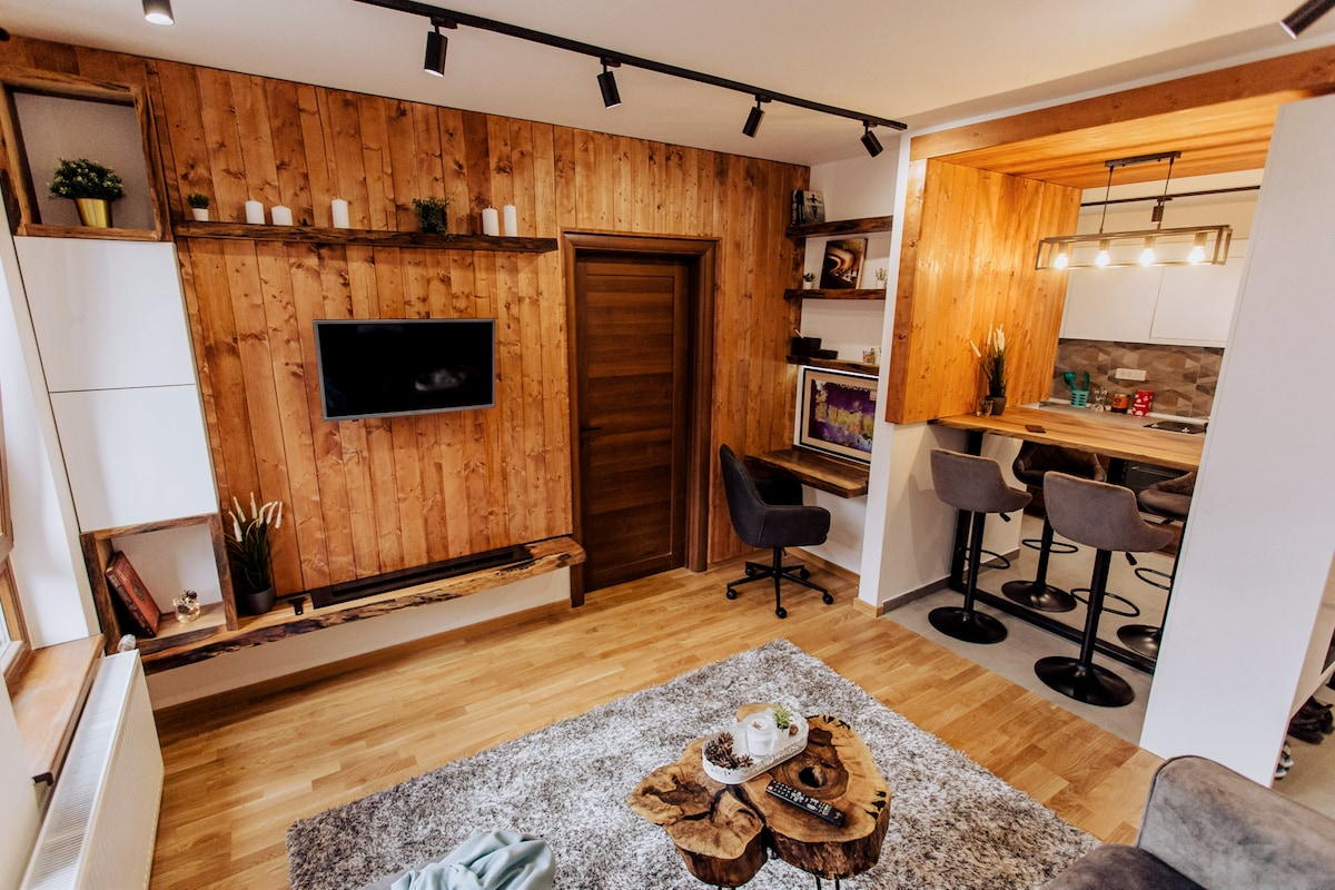 Welcome to your perfect mountain getaway! Located in the very heart of Divčibare, this cozy and comfortable apartment is ideal for everyone who loves nature, adventure, and relaxation, all in one place. It features a bedroom with a double bed, a living room with a sofa bed suitable for more people, a fully equipped kitchen, and a balcony with views of the surrounding pine forest and hills. Everything you need for your stay is here, from free Wi-Fi to floor heating for chilly mountain evenings.