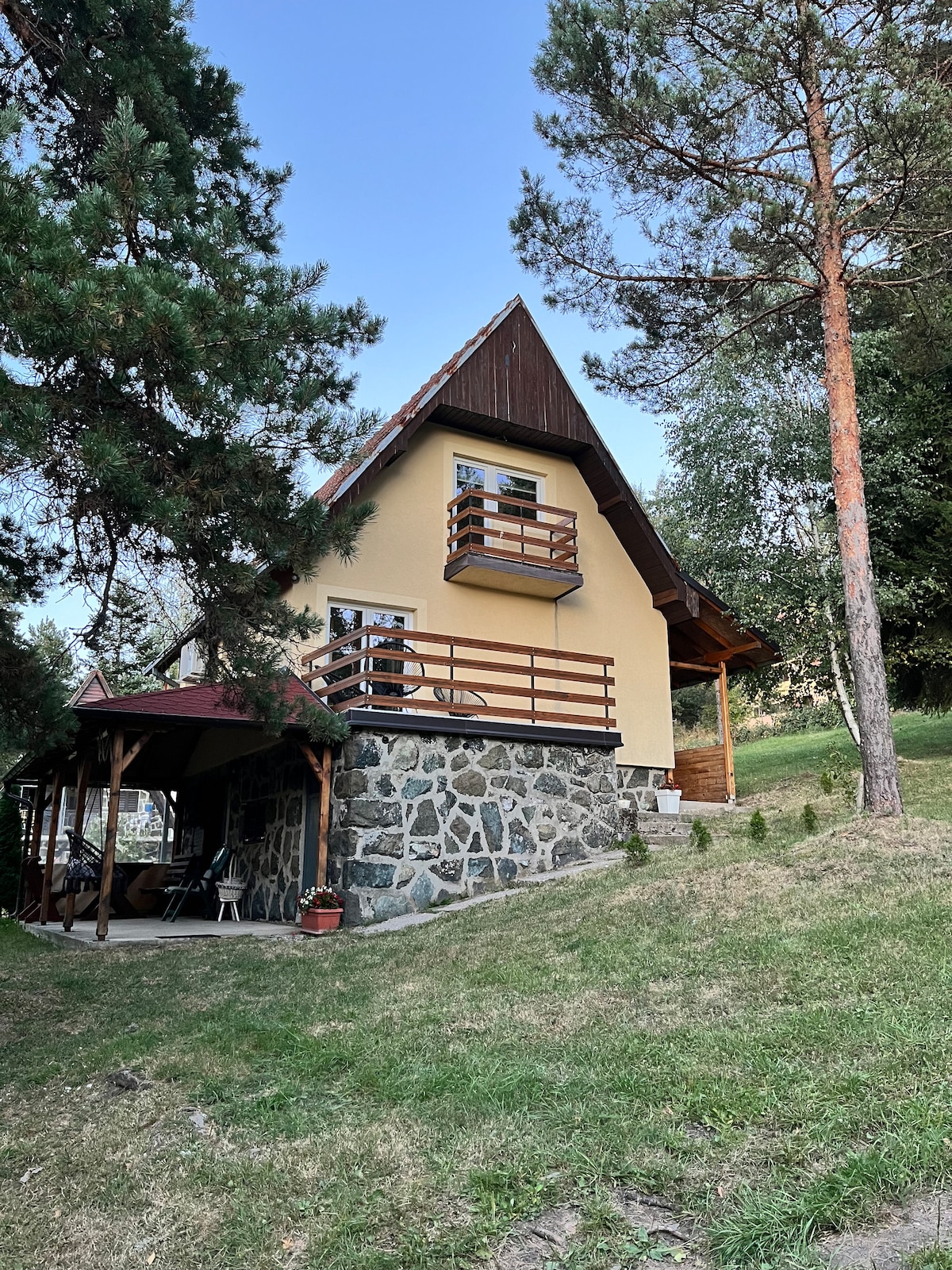 Take it easy at this unique & tranquil getaway. Located 2.5km from the center, markets, church, restaurants, play center & one of the ski slopes. This warm cabin sits where 3 winds cross, among pine trees in a quiet forest. Its a must visit if you’re a ski lover or not with many hiking trails for the enthusiasts or just enjoy a romantic getaway. The cabin has electric heating in each room & 1 wood fireplace to complete the mountain ambiance. For the children there’s an outside obstacle courseas.