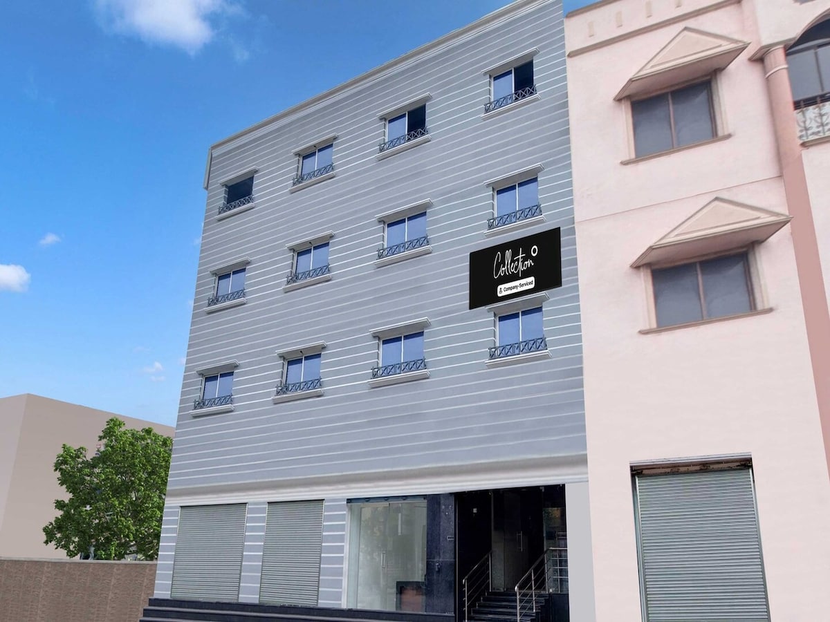 Top Floor Sanctuary: Escape to uninterrupted peace! This spacious, top floor haven boasts a private top-floor suite with 2 large rooms. Ideal for families or groups, it offers 4 comfy beds & a squeaky clean bathroom. Enjoy AC, pristine furniture, and ultimate convenience - Groceries are right downstairs, and for entertainment or travel needs, the Inox theatre and the Railway station are just a 5-minute walk away. Relax & respect the space (newly built!).