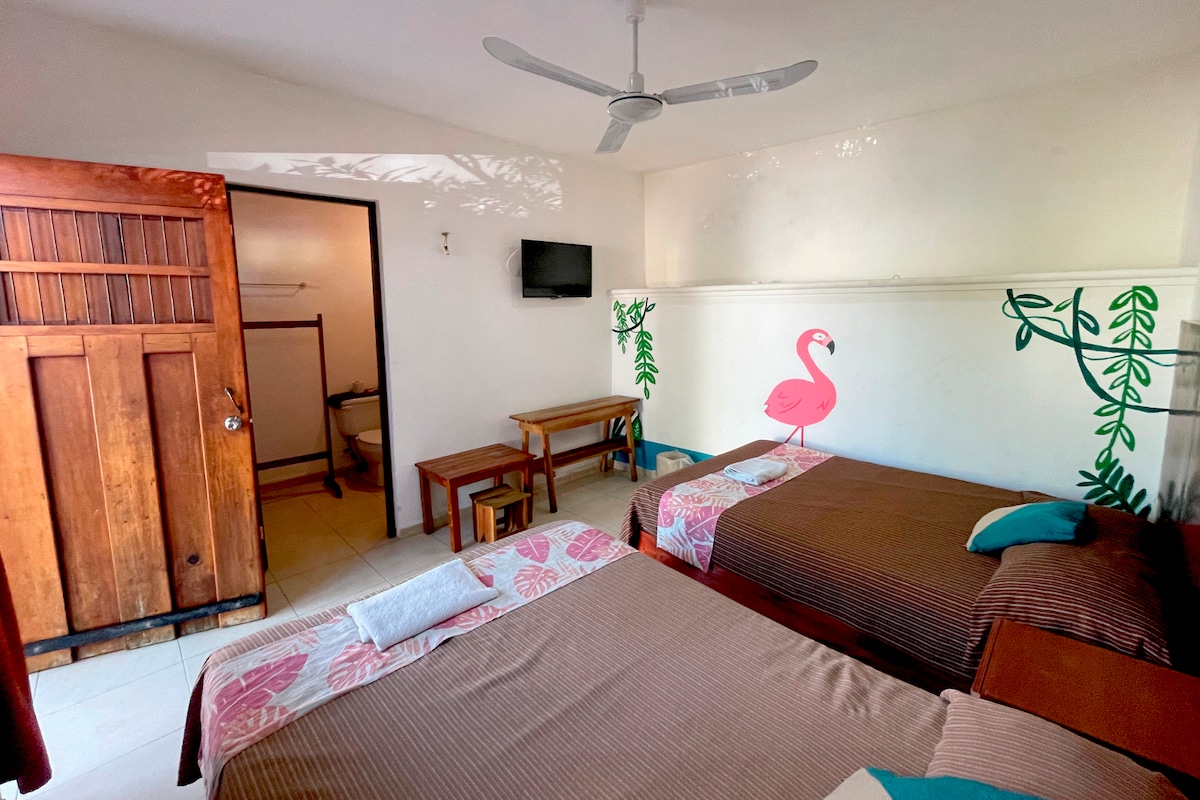 En Casa Yaxche nos encantaría tenerte como huésped cada alojamiento esta pensado en tu comodidad y confort, para así hacer de tu estancia una experiencia única e inolvidable donde la magia, la cultura maya y la comodidad se unen en un ambiente espectacular y puedas disfrutar mucho, donde nos encantará atenderte. Cada habitación cuenta con dos camas matrimoniales, tv con cable, internet, ventilador de techo, aire acondicionado, agua caliente, closet, y baño propio adentro de la habitación
