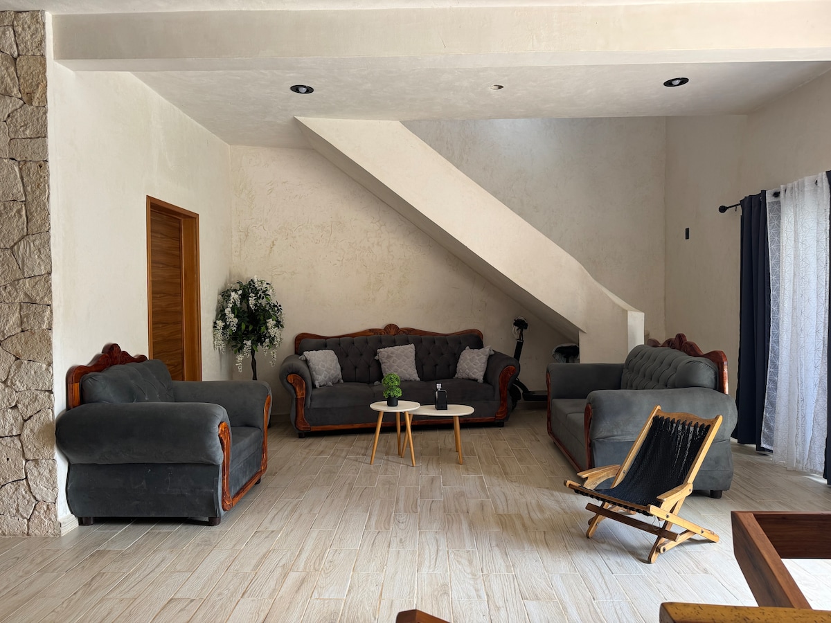 La casa cuenta con lo básico para una estancia cómoda en tu visita a Valladolid. (Reserva desde 1-7 huesped) Ofrece 2 habitaciones que contienen: aire acondicionado, 2 cama matrimonial, 1 king size, smart tv, ventilador de pedestal. Terraza techada para protección de tu auto (1 coche). Internet de fibra óptica y sala con muebles cómodos donde podrás trabajar en laptop. La casa esta totalmente bardeada para seguridad y privacidad de los huéspedes y se ubica a 12 minutos en auto del centro.