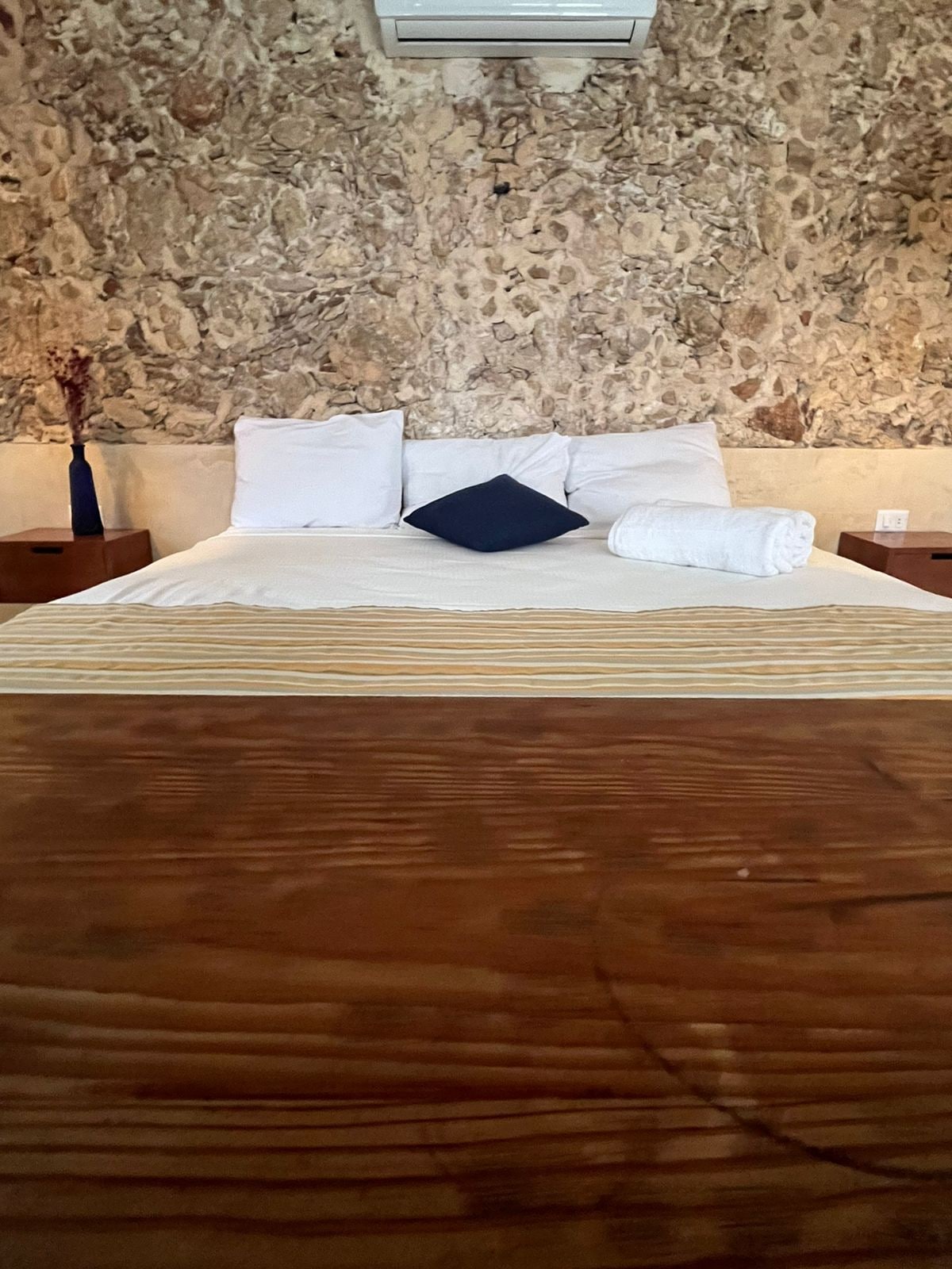 Located behind of the Central Cathedral of Valladolid, decorated with rustic furniture from local artisans, with 60 MB WiFi, hot water and A/C. A comfortable double bed will make your stay very pleasant, a balcony with views of the historic center to admire the beautiful Yucatecan life and walk in the colorful streets and feel the local vibes We support you with authentic experiences and local secrets 10m Central Cathedral and Park 300m Los Frailes road 400m Cenote Zaci 400m ADO station