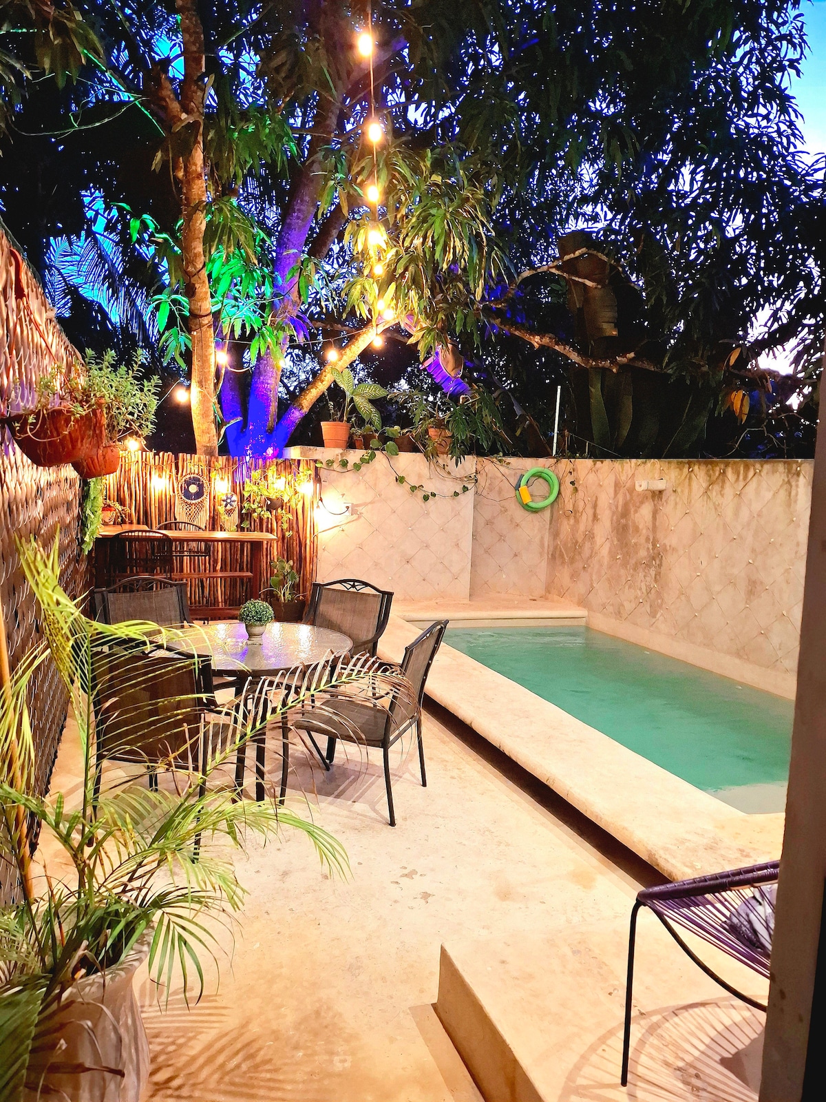 Bienvenida/o a nuestra acogedora casa en el Pueblo Mágico de Valladolid! Estamos a 5 min en auto del centro historico y 3 min del cenote Zací. Hecha de piedra y maderas tropicales, con interiores amplios y frescos, un patio central con refrescante piscina y árboles frutales que crean un ambiente relajante. Cama kingsize, Aire acondicionado en la habitación, Bañera con agua caliente, WiFi, Cocina equipada, Piscina disponible 24/7. ¡Descubre el lugar perfecto para tu estancia, en Sureña!