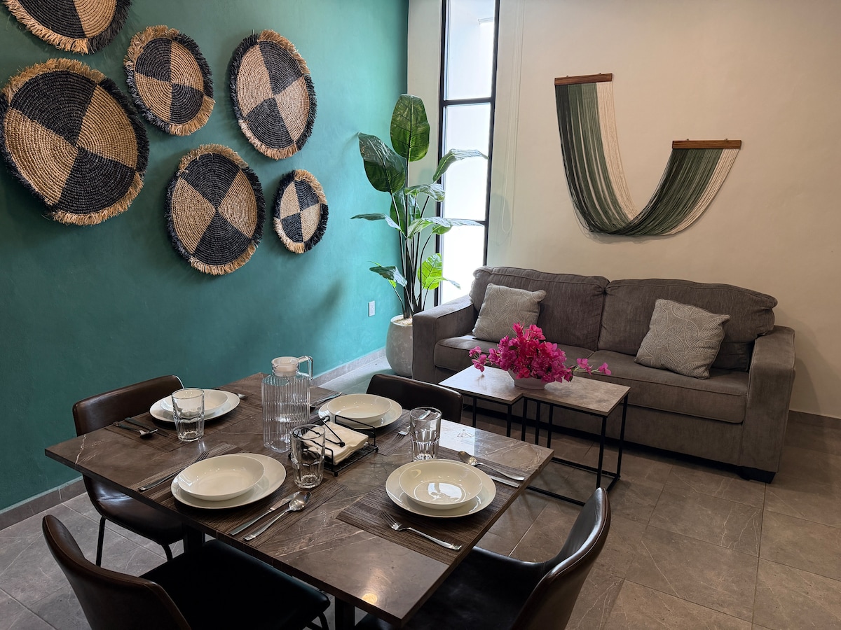 Disfruta de éste alojamiento pequeño con una recámara, un baño, cocina completamente equipada, y terraza aire libre, se encuentra ubicado en una zona exclusiva y céntrica de la ciudad, en donde encontrarás restaurantes, tiendas, farmacias, etc. ubicada a pocos pasos de la catedral de Valladolid, del "Cenote Zací", del Museo de la Ciudad y del mercado municipal.