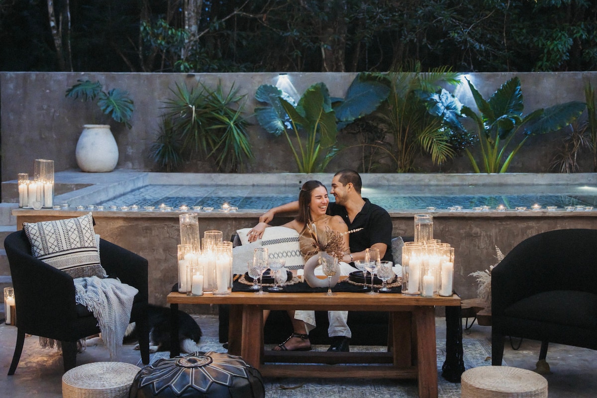 Escape to the heart of the Cenote Route, where the Mayan jungle whispers ancient tales. Our luxury villa is a private sanctuary for eight, designed to blend modern comfort with the mystical energy of Puerto Morelos. Here, luxury is waking to the songs of exotic birds and breathing in the peace of a wild and exclusive environment. A warm and vibrant retreat where time stands still. Come reconnect with your natural essence.