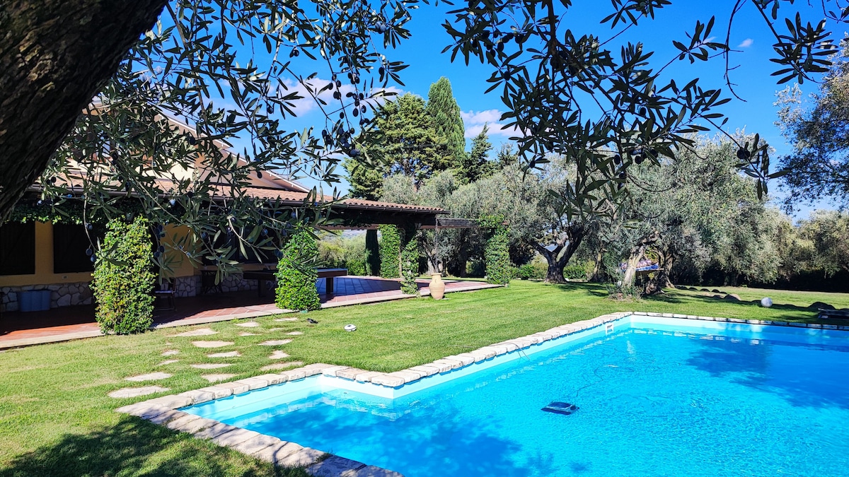 Suggestivo cottage con piscina immerso in un meraviglioso parco di ulivi secolari. Godetevi il vostro soggiorno nella più totale privacy, l'utilizzo della struttura è dato in esclusiva, NON SARANNO PRESENTI ALTRE PERSONE OLTRE A VOI. Avrete a disposizione un grande porticato arredato con dondolo, carambola, tavolo da ping pong, barbecue e tv Il cottage è a soli 5 minuti dal raccordo autostradale Napoli-Bari, da San Giorgio del Sannio e dal paese di Apice. La città di Benevento è 10 minuti.