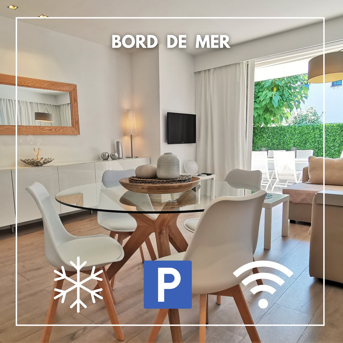 海滨Golfe Juan,2卧,空调,无线网络,停车场,露台