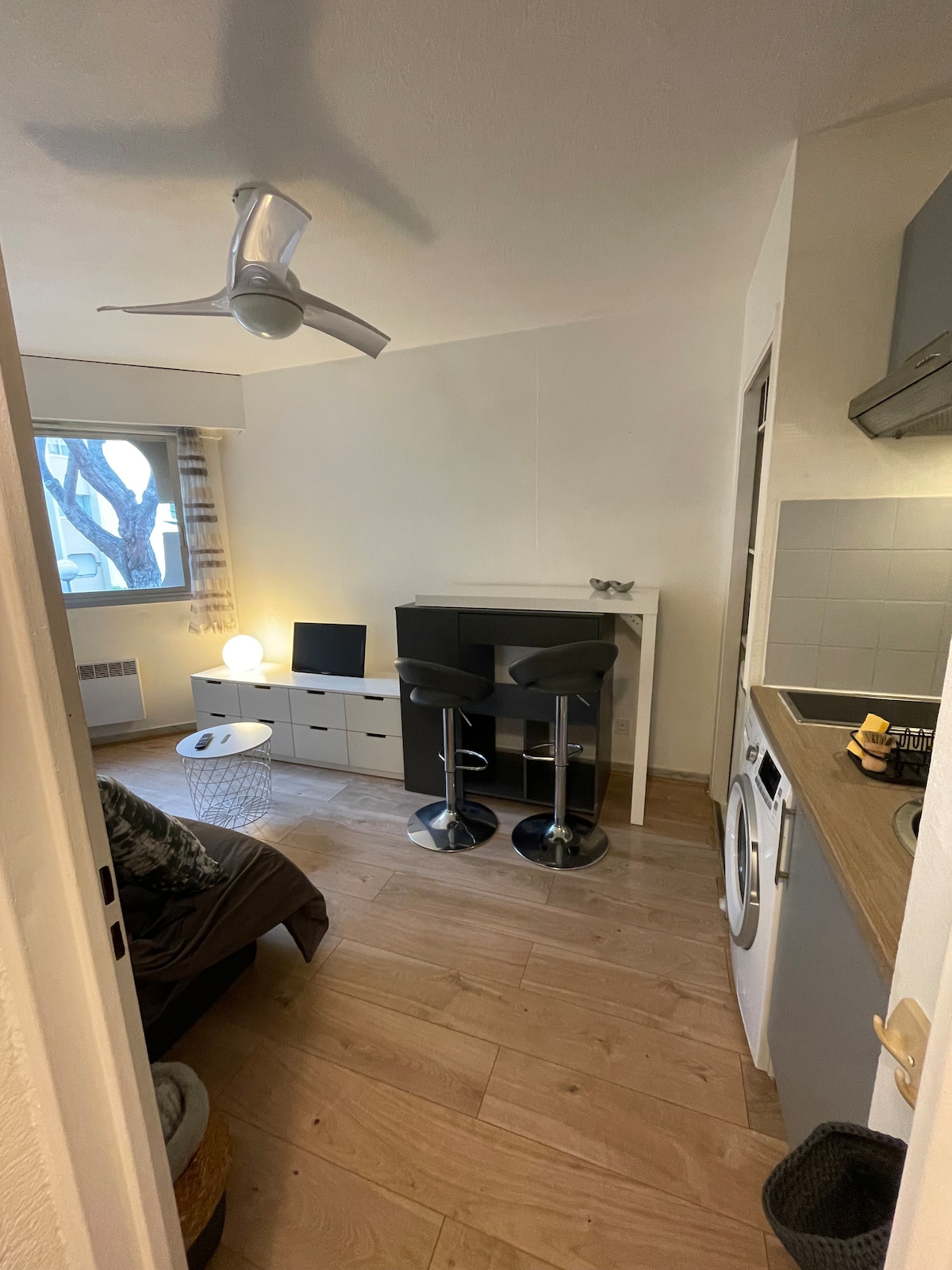 Large studio apartment of 39 m2, design by Interior Designer , decorated in the manner of an industrial loft, Spacious and very well arranged, located in Juan les pins. 2 min walk for private and public sands beaches. the place to be !!! Free Public Carpark on adjacent streets. Interparking , payment, (cheap price, at 5 min walk , video security) 56 chemin des sables 06160 Juan les Pins.