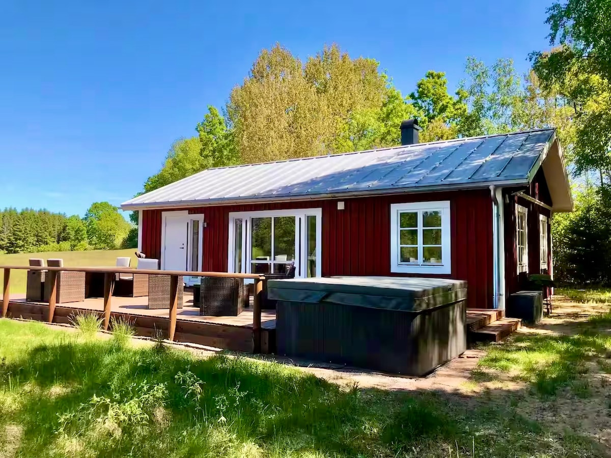 New built 2021 this log house is an fantastic exclusive living, private location, amazing views of lake, forest and fields. Plenty of activities . This place is made for the adventurous or for a relaxing getaway. Enjoy the included cold-mangled bedsheets and freshly washed towels. Wifi. Enjoy fireplace inside, spacious living room inside the house or relax at the great terrace and take a bath in the luxurious outdoor SPA. Perfect for trekking, biking, riding, fishing and golf. Rosenhult dot se
