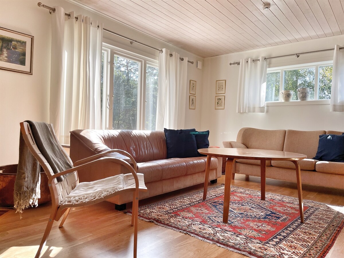 Lilla Lyngabo ligger med skogen i ryggen omgärdat av frodiga åkrar och ängar. Genom de stora glaspartierna kliver du rakt ut i naturen, från så väl sovrum som kök. Som den enda unika gästen njuter du ostört av lugnet och det vackra som omger Lilla Lyngabo. Trots avskildheten är det endast 2 km till närmsta golfbana, 4 km till havet och 10 km till centrala Halmstad och Tylösand. Haverdals Naturreservat med Skandinaviens högsta sanddyn och vackra vandringsleder finner du på din väg till havet.