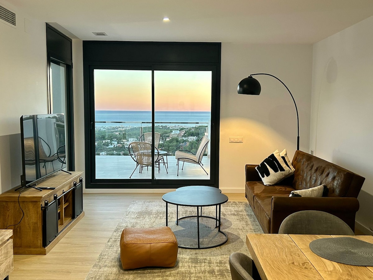 l CALAFELL 5 BEACH with WIFI and AC Air Conditioning, Soundproof windows. The apartment 75 mt from the beach Calafell, with blue flag. It consists of: 1 bedroom with double bed 150 * 190 and box spring tempur, Air AC Fujitsu, full dining room, sofa bed 2 people, folding, and cot park if needed, kitchenette, bathroom with shower-WC and washing machine. The apartment with a large terrace on a sixth floor with sea and mountain views. Theme parks of Port Aventura and Ferrari Land just 40 km away.