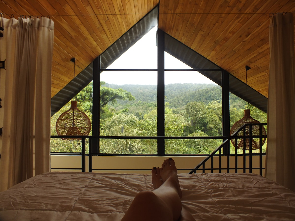 Jaguar Houses is conveniently located between the center of town and some of the most popular attractions in the area such as Canopy Zip Lining, Suspended Bridges and the Santa Elena Nature Reserve. Inspired by Nordic architecture, Jaguar is composed of 3 independent homes, elevated on pillars, giving you the impression of floating on the trees. The 3 houses are identical however the view can slightly change from one to another. The photos used for each listing are a mix of the 3 houses.