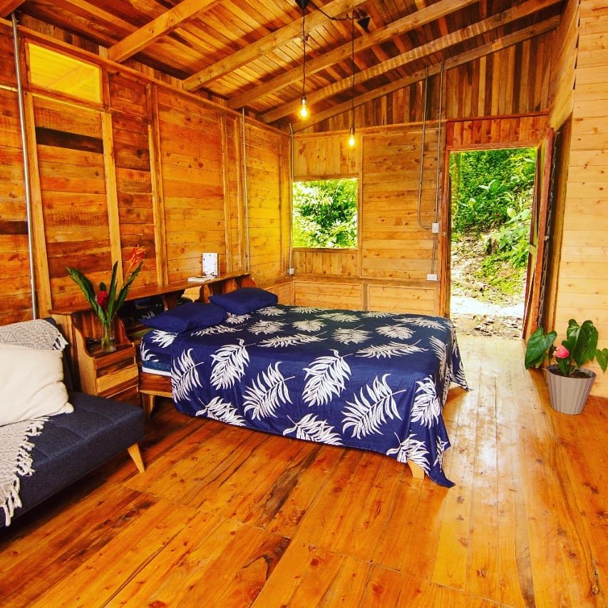 EcoCabaña KM40 is a rustic and private refuge in the middle of nature, ideal for getaways for couples, families or long stays. Located in a 2,500 m² property, it offers total privacy, surrounded by trees, birds and butterflies. It is equipped with everything you need to enjoy a comfortable stay, quiet and connected with nature. Just 200 meters away you will find the San Lorenzo River, a natural pool perfect for refreshing and relaxing.