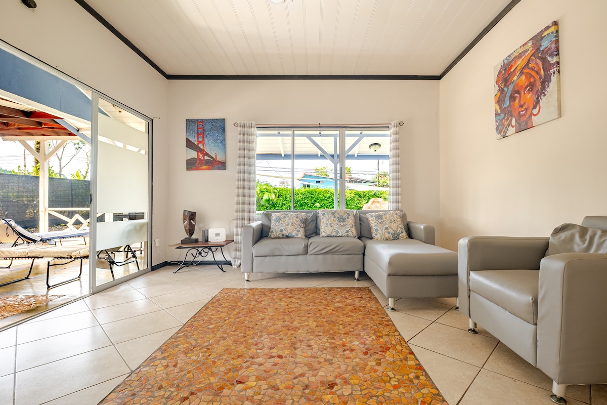 At Casa Pura Vida, you'll enjoy an entire house with a private pool: there are no shared areas. Located a 12-minute drive from downtown La Fortuna. The property is entirely yours. Surrounded by lush forest, it is in a secluded, safe, and quiet neighborhood. There’s a good chance of spotting wildlife (birds, garrobos, etc.). The house features a fully equipped outdoor kitchen and barbecue area, a cozy bedroom with A/C, bathroom with hot water, WiFi, streaming TV, games, and a large outdoor area.