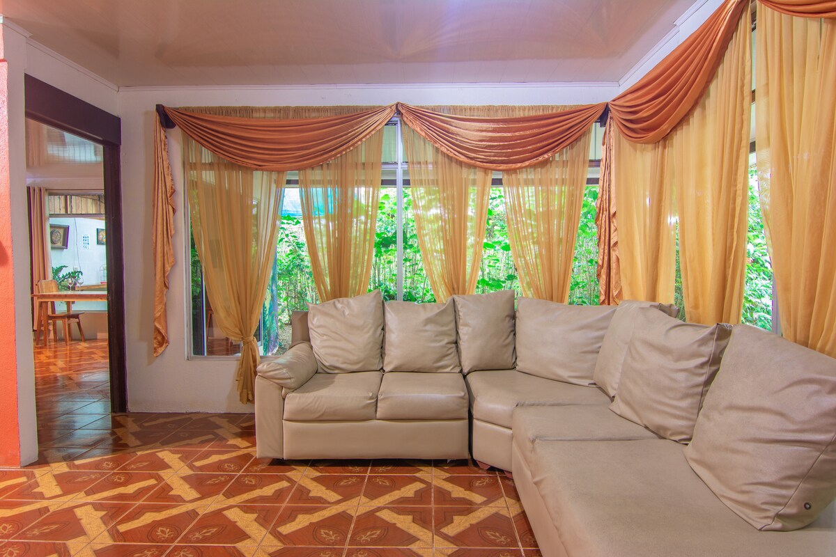 Private house. 3bedrooms 2 full bathrooms HOT water. kitchen, dining room, living room . Private driveway and parking. Air conditioning. Porch. stroNg WIFI. Paintings by local artist. Nestled in a private nature sanctuary. Frogs! Blue- jean, Red- eyed, Gaudy. Scarlett Macaws. Toucans. Sit on the dock of the lagoon, take a peaceful walk on the many creek trails, take a exciting night hike, or ask Maricel to teach you about the medicinal plants. Perfect stop from San Jose to La Fortuna 702.