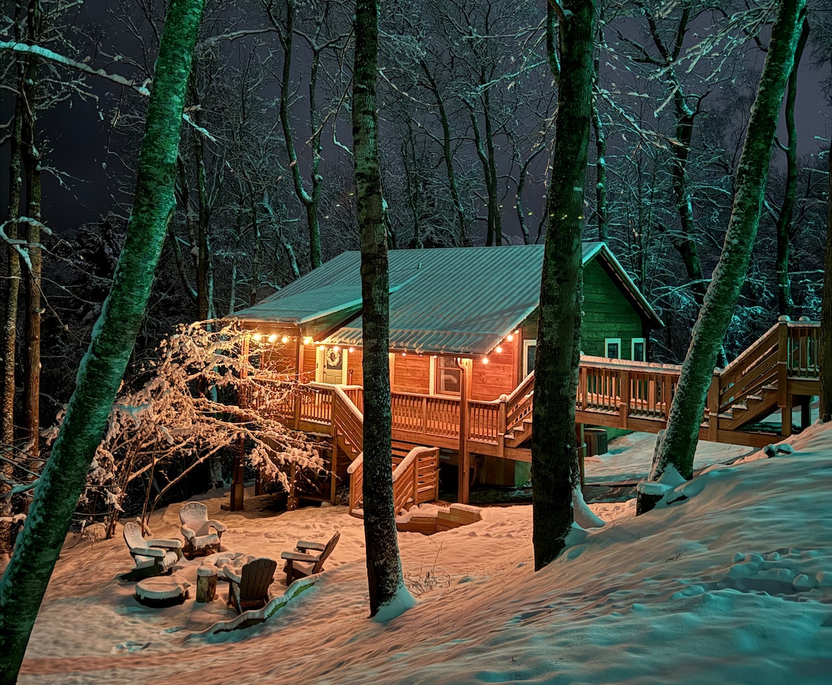 Skywatch Cabin is a luxury couples retreat on 7 private acres. With huge windows in every direction, you’ll feel immersed in the woods. Stargaze around the fire pit or from the private outdoor shower. Relax in the hot tub or sauna. Your cabin is just a few minutes from the Blue Ridge Parkway, downtown Boone, the quaint town of Banner Elk, Grandfather Mountain and so much more! (Please read winter driving requirements below) **Video tour available at OutOfBoundsRetreats