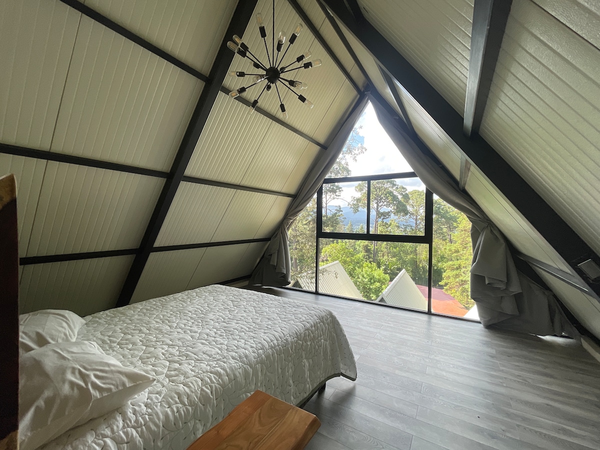 Es una cabaña, una torre y un chalet a la vez, con un diseño muy moderno en el que te integras a la naturaleza del bosque y tienes vistas maravillosas en todas direcciones son 3 pisos que puedes manejar de acuerdo a tu estilo de vida, por ejemplo si vas en pareja pudes usar la recamara del tercer piso como área de trabajo y definitivamente hacer home-office. pero también tendrás ese espacio para dormitorio de un invitado. también si tienes un hijo podrás dedicarle esa segunda recamara.