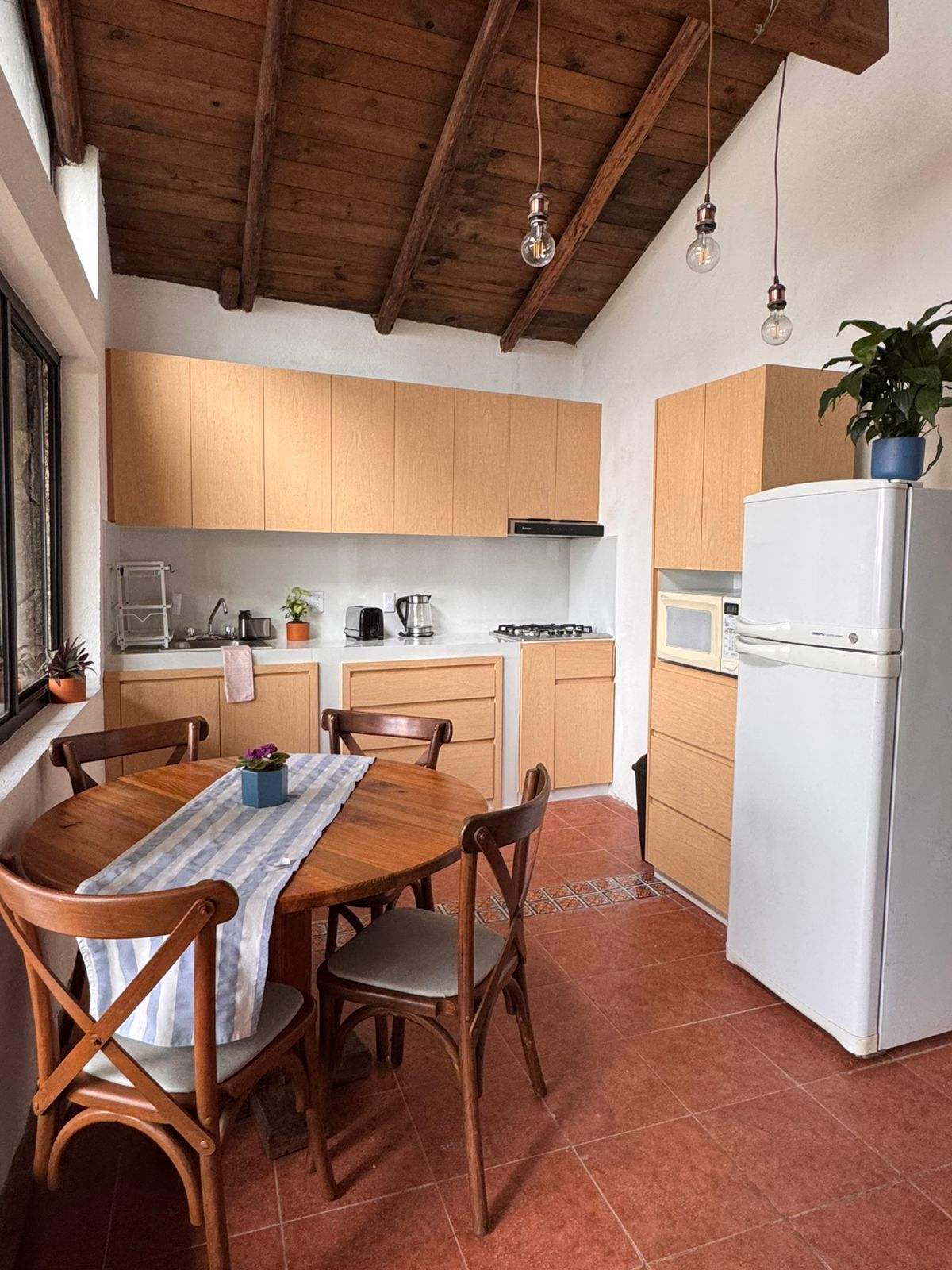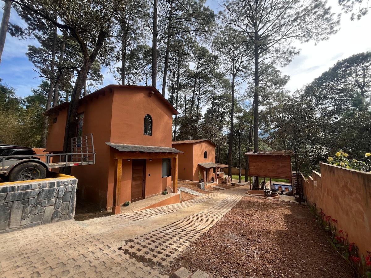 Es una increíble casa de campo en una huerta de aguacates. Ubicada en San Juan Atezcapan a corta distancia de Valle de Bravo. Es ideal para retiros y escapadas de la ciudad, para días de descanso y desconecte. Está configurada en dos bloques. En una parte están los espacios públicos, una sala o estancia, comedor, cocina con un baño y un desayunador al exterior. Inmediatamente a un lado están los espacios de descanso. Una habitación principal con cama king, armario, terraza y su propio baño.
