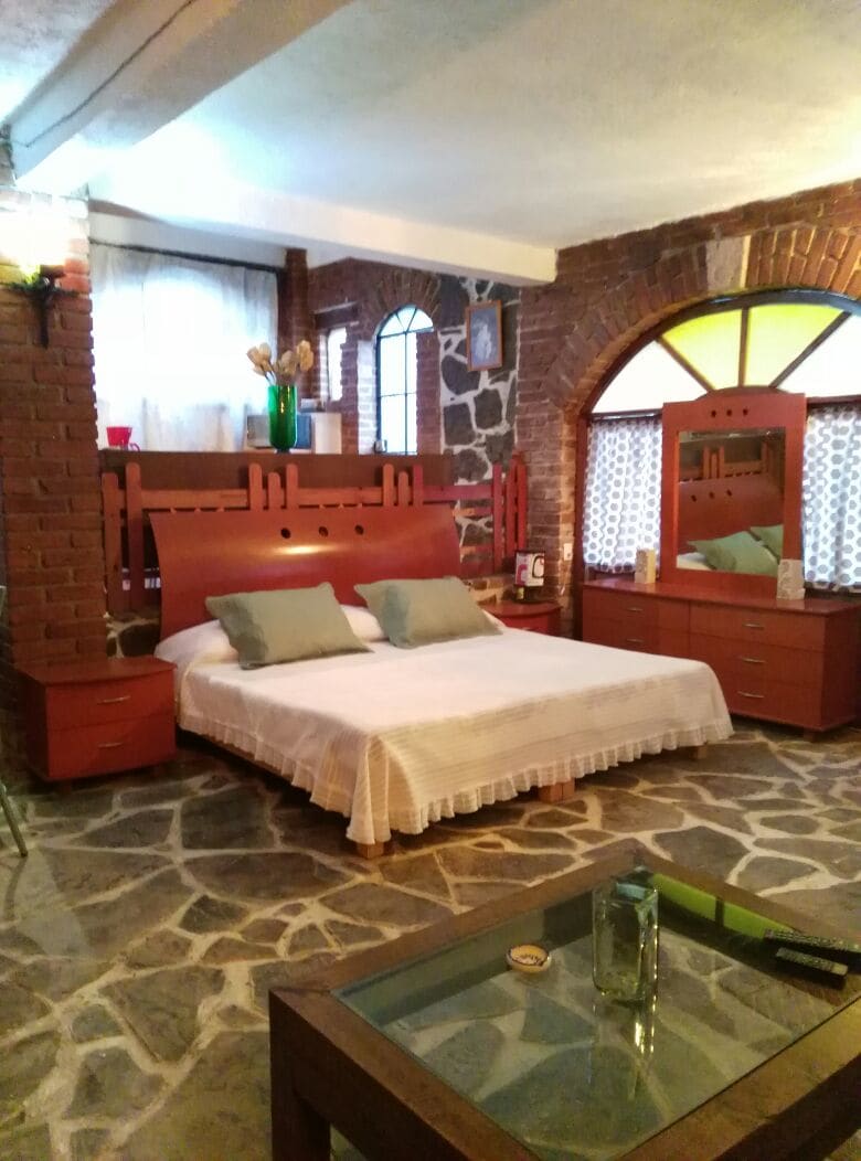 Acogedor Bungalow en terreno con vegetación, con muy buena ubicación. Perfecto para descubrir el pueblo y sus alrededores. Ideal para salir de la rutina, olvidarse de la ciudad y el trabajo. Arquitectura tradicional de Valle de Bravo. Excelente lugar para los amantes de la naturaleza. Esperamos recibirte y que disfrutes de nuestro alojamiento.