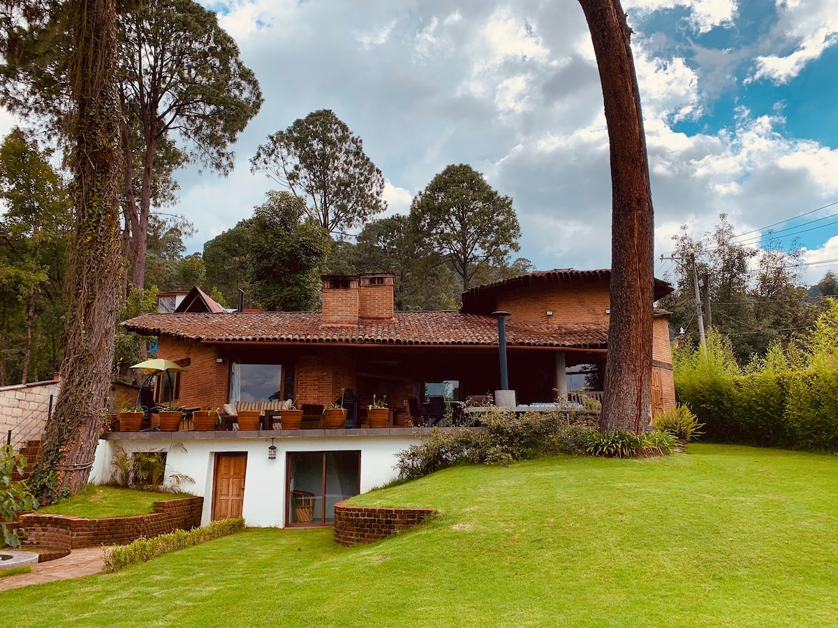 Perfect country house for 10 people with perfect location in Avandaro! Includes daily cleaning and cook, the house has a jacuzzi, large gardens, 3 bedrooms with bathrooms, TV's and fireplaces. The house is fully equipped to make your stay an unique experience!