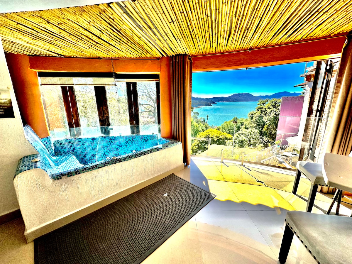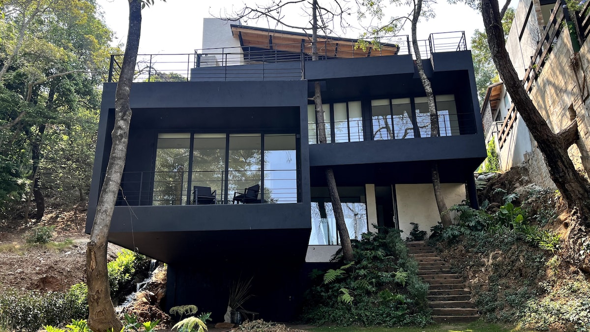 Disconnect from the routine in this unique and relaxing accommodation. A beautiful little villa, with a huge garden, private terrace, view of the lagoon and the flowers field, fireplace, patio with grill and wood oven. Located 10 minutes from Valle de Bravo in a beautiful area, full of nature and tranquility. Beautiful little place for you, for couples, friends or family. The best option for you, book for a month, great for home office, per week or weekend.