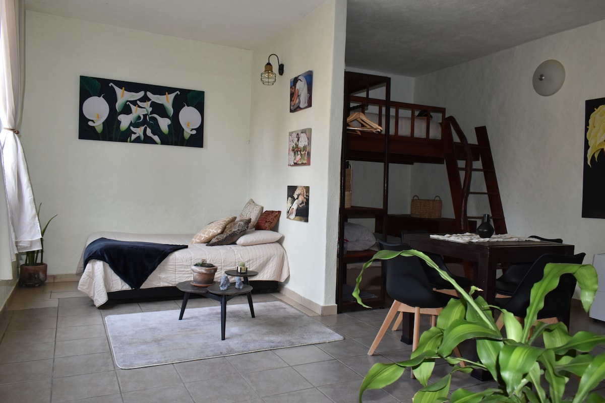 Sumérgete en el lujo absoluto de este céntrico apartamento, diseñado para ofrecerte una experiencia que se ajusta a tus necesidades. Con una ubicación privilegiada en el corazón de este pueblo mágico, este alojamiento combina comodidad, elegancia y sofisticación para brindarte una estancia inolvidable.